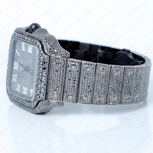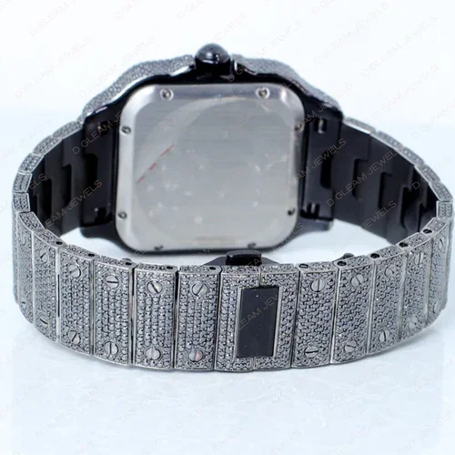 Modern Luxury Hip-Hop Moissanite Watch with Fully Black Shape Square Stainless Steel Case Bust Down Iced out Effect