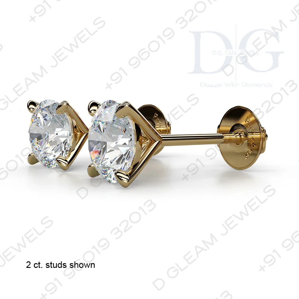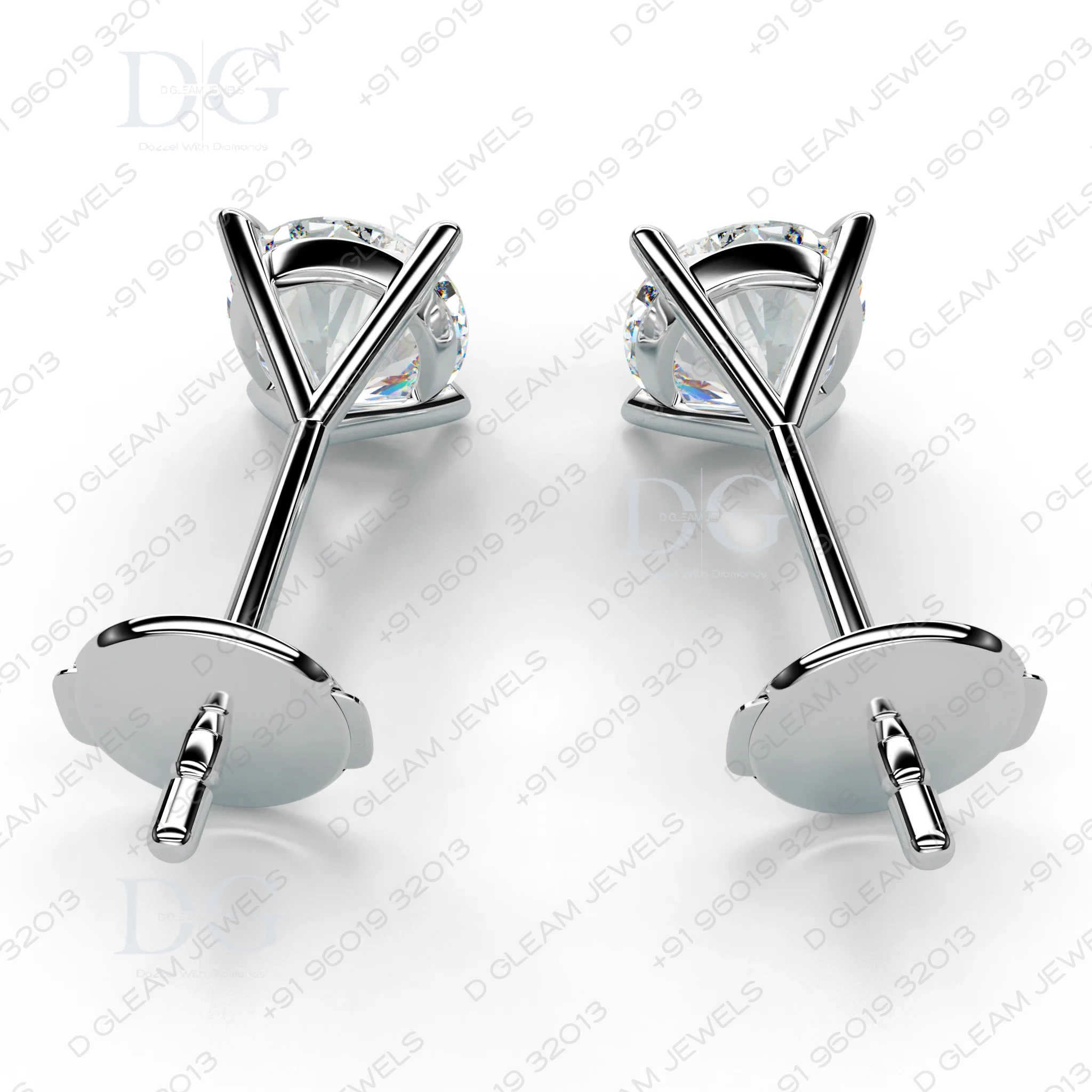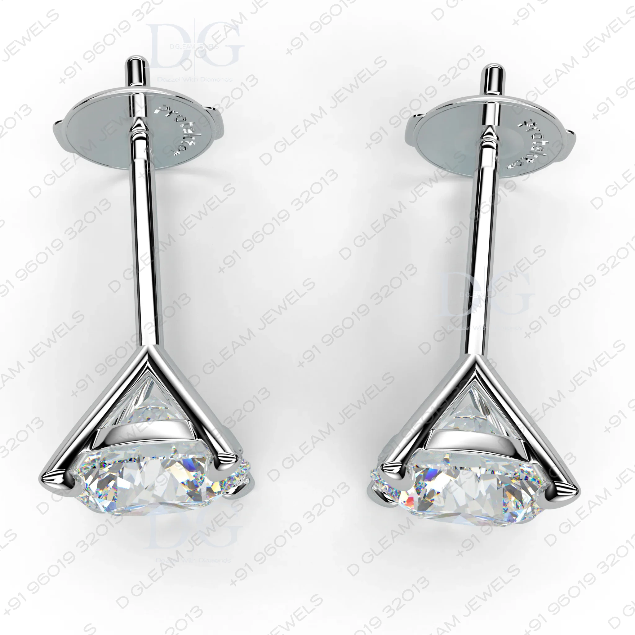 Trendy White Gold Diamond Stud Earrings 2.00 CT Lab Grown Lab Diamond Martini 4 Prong Setting Wedding Pushback Gift