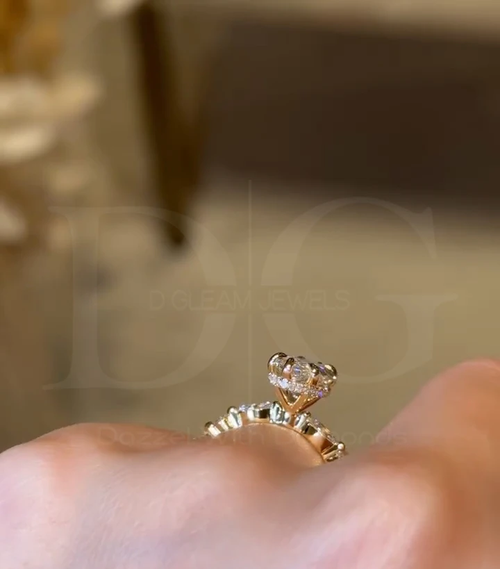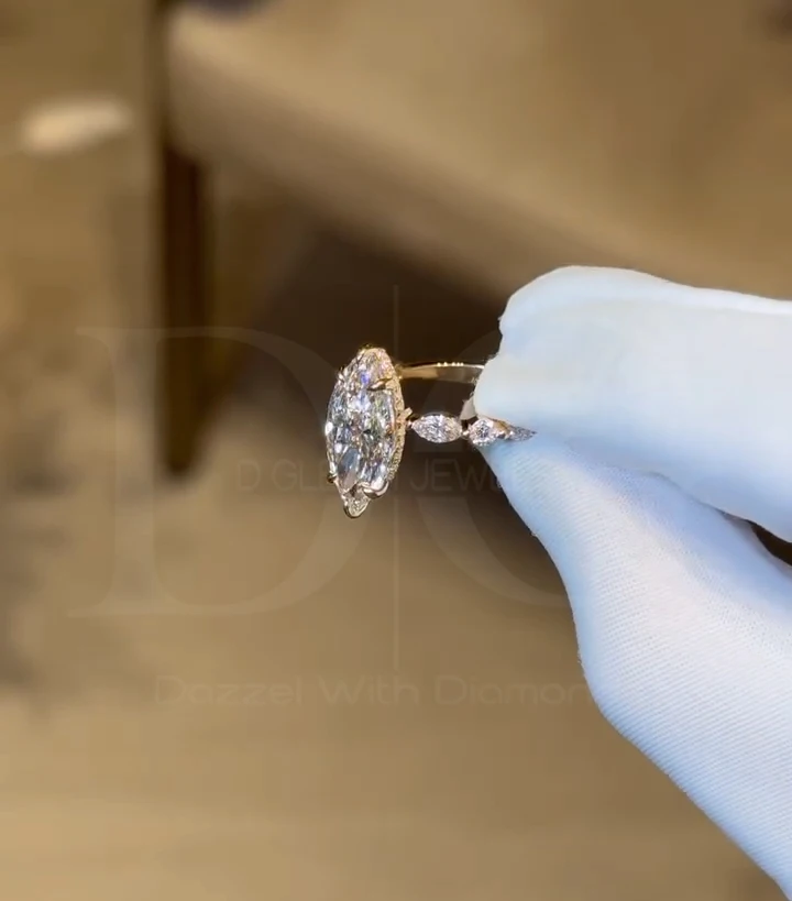 Graceful 3.08ct Elongated Marquise-Cut Floating Diamond Ring Hidden Eternity Halo Wedding Anniversary Ring for Women IGI