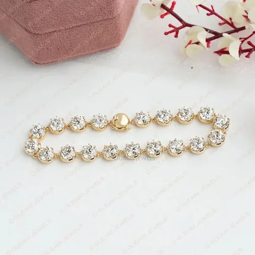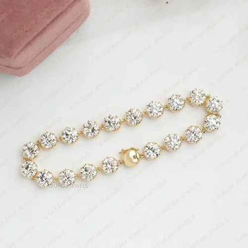 14K Yellow Solid Gold Lab Grown VVS Cut Diamond Tennis Bracelet Classic Design Fine Chain & Link Bracelet Perfect Party Gift
