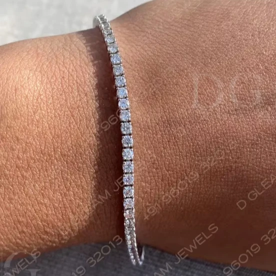 4 Carat Classic Gold-Plated 925 Sterling Silver Tennis Bracelet High Quality Cut Moissanite Handmade for Parties
