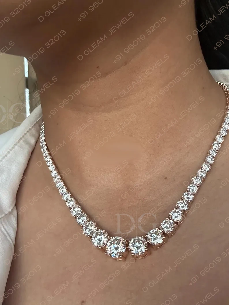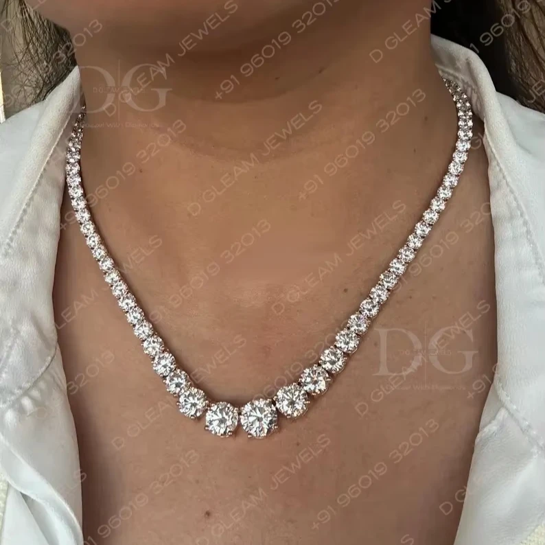 40ct Women's 925 Silver IGI Certified Trendy Link Chain Moissanite Tennis Necklace for Graduation