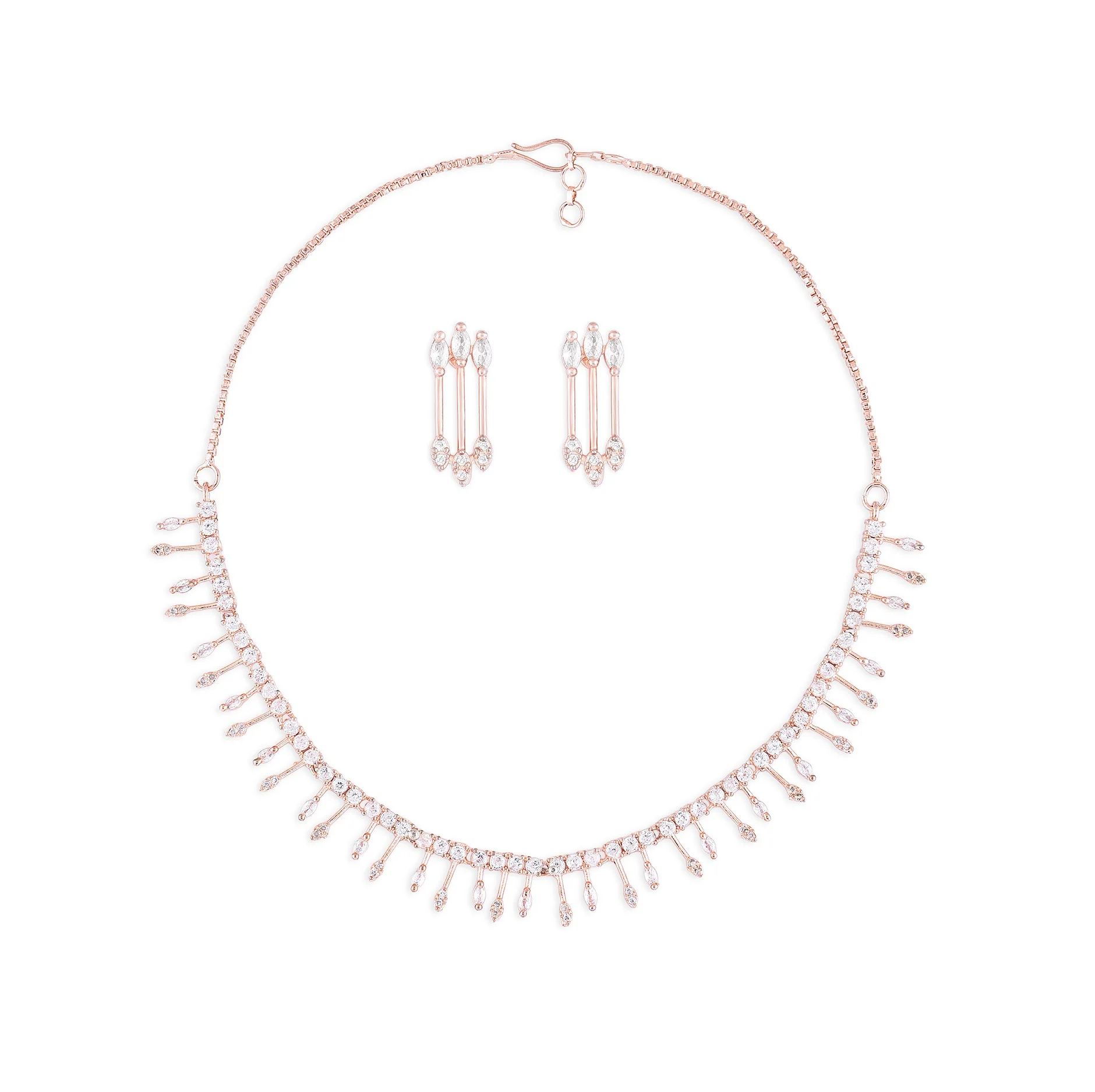High Quality African Diamond Jewelry Sets Rose Gold Plated Zircon Necklace and Earrings for Engagement Wedding and Party Wear