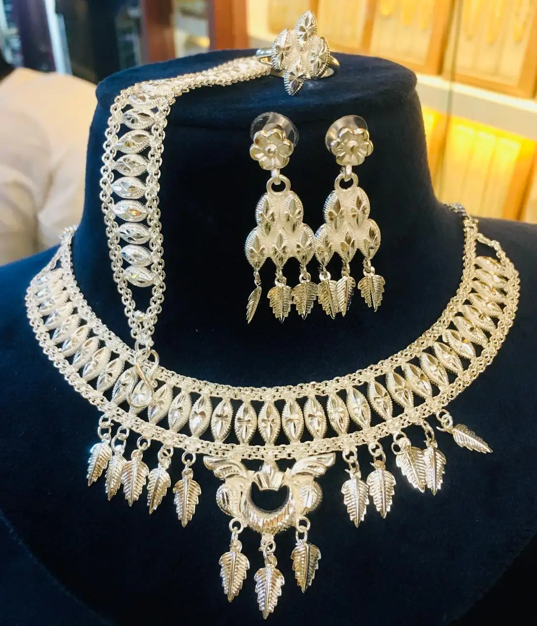 American Diamonds Indian Vintage Classic Pearl Flower Brooch Earrings Necklace Anniversary Fashion Copper Jewelry Set Gift