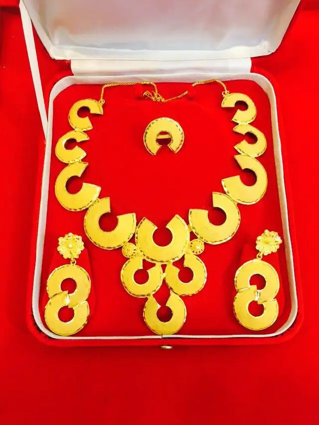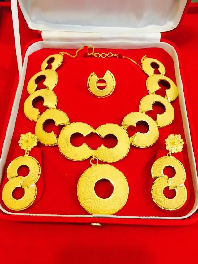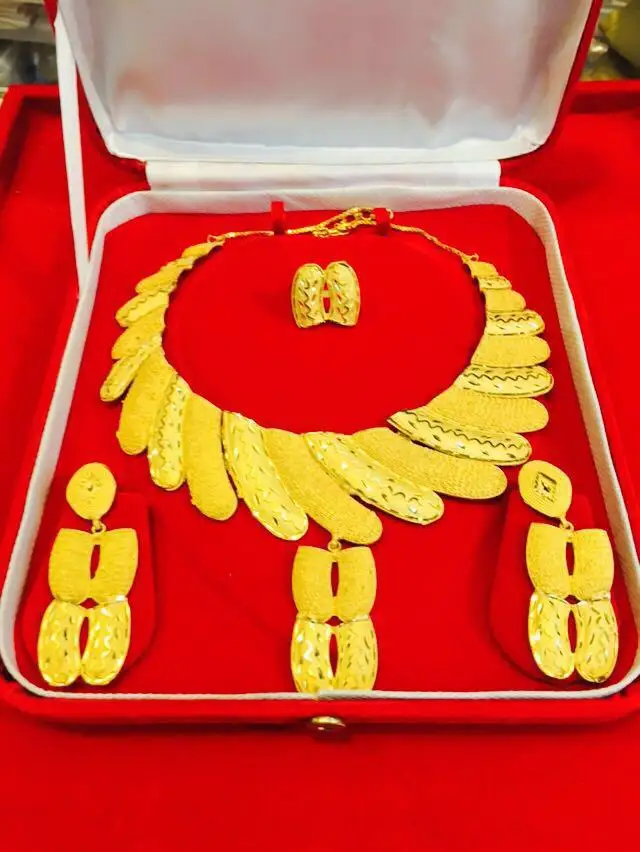 Hot Selling 18K Gold Plated Necklace Set for Women Vintage Chains Zircon for Parties Weddings RTS African Charm Wedding Gift