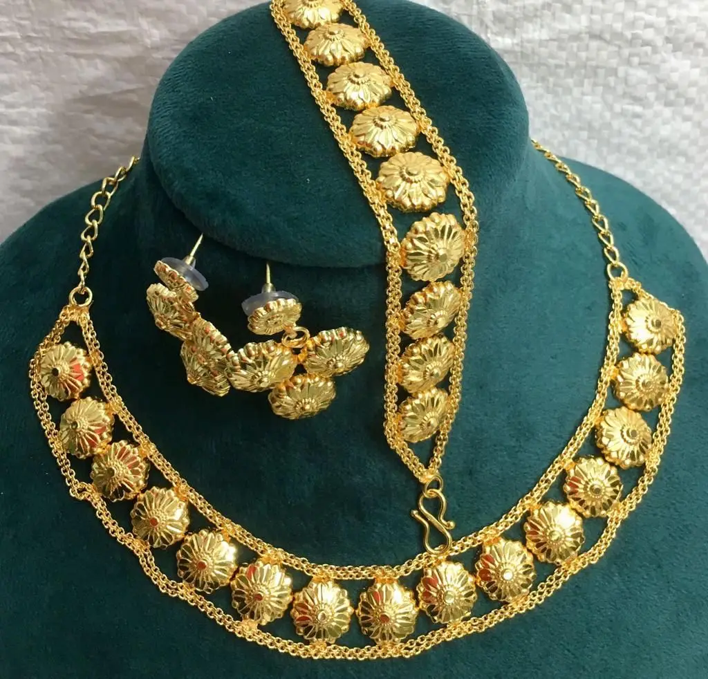 Imitation Dubai Vintage Copper Jewelry Set Daily Life Pearl Flower Anniversary Earrings Bangles Brooches Combs Necklace