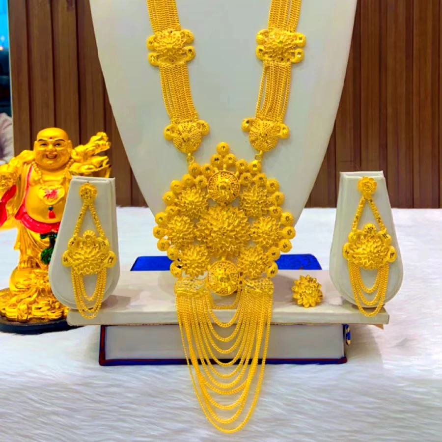 24K Gold Plated Dubai Fashion Jewelry Necklace Set Earrings Bangles Combs Brooches Copper Material for USA