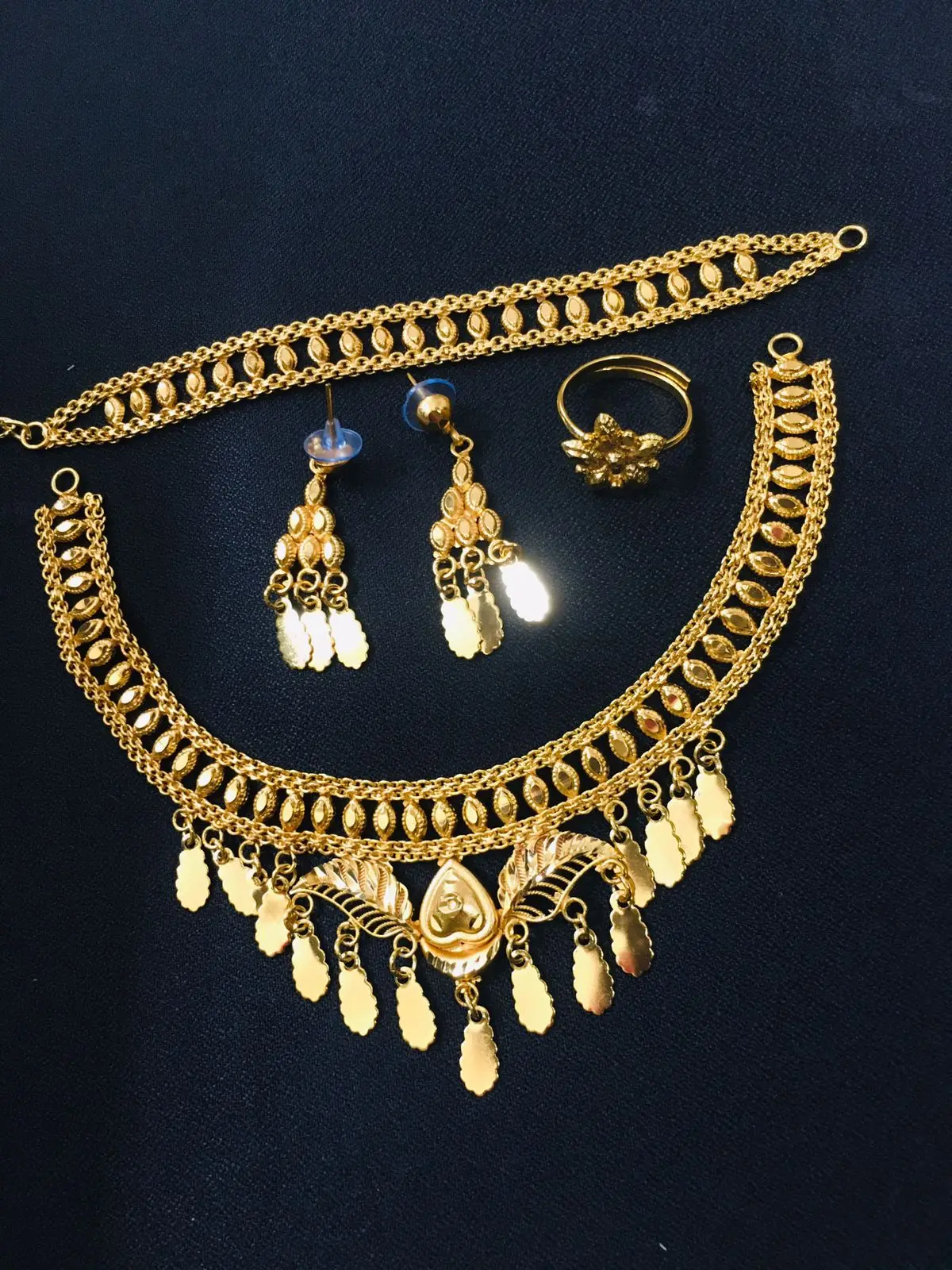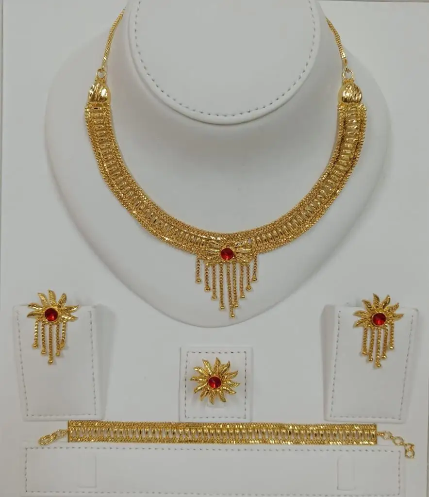Classic 24K Gold Plated Vintage Fashion Copper Set Comoros Mayotte Necklace Earrings Bangles USA France Style Jewelry Sets