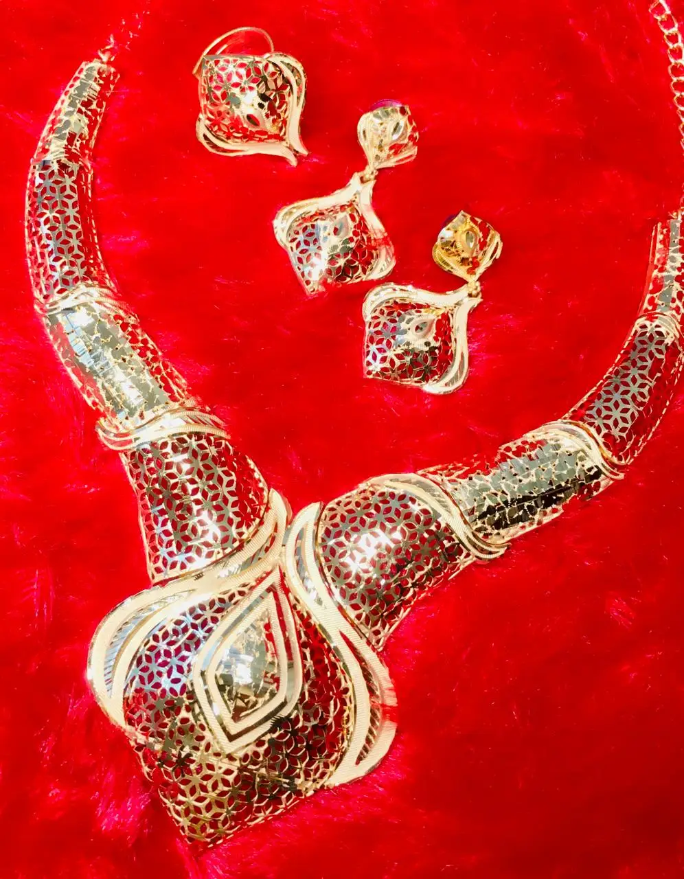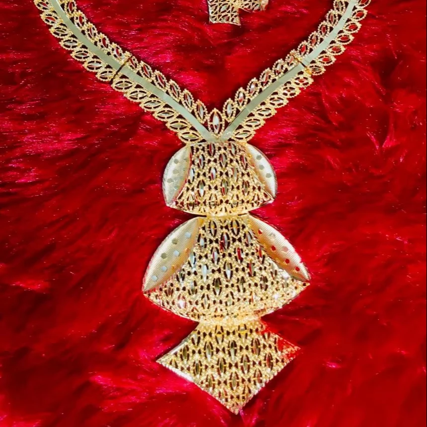 24K Gold Plated Vintage Jewelry Set 24 Carat Copper Necklace Earrings USA France Fashion Accessory Premium Quality Jewelry Sets