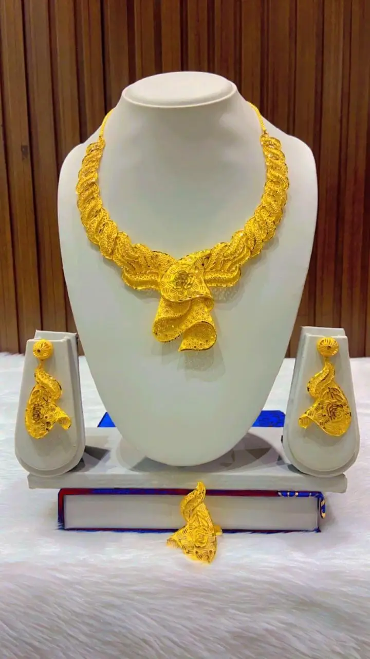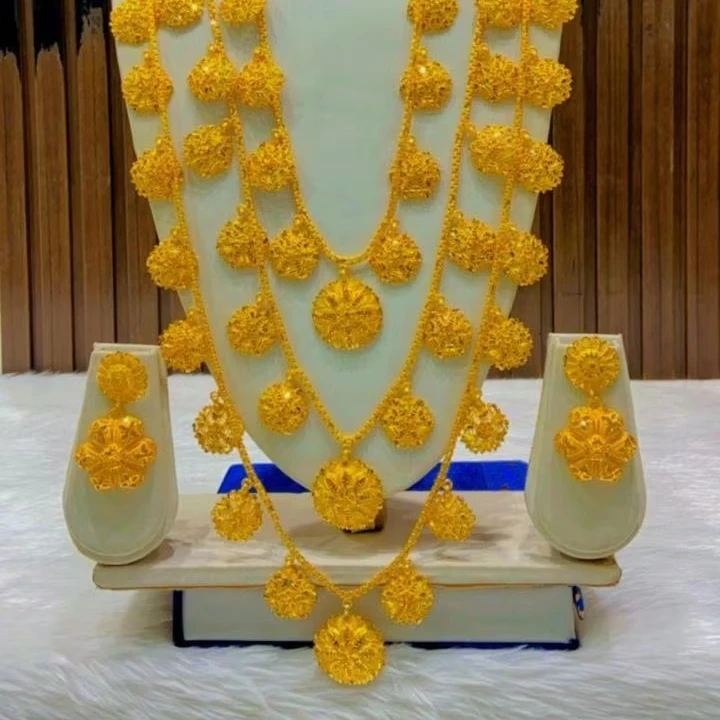 Vintage USA France Style 24K Gold Plated 18K Copper Floral Pattern Zircon Earrings Necklace Fashion Jewelry Set Accessory