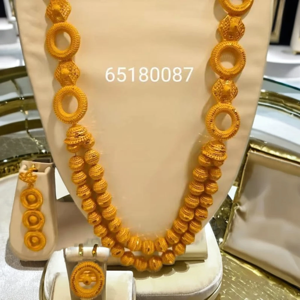 24K Gold Plated Vintage Comoros Mayotte Style Fashion Jewelry Set Includes Necklace Bangles Stylish Copper Diamond Gift for USA