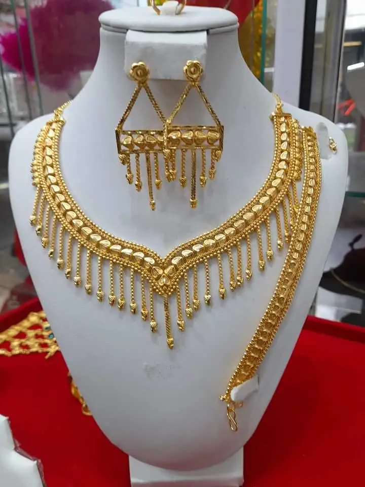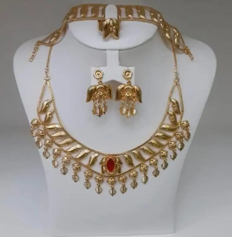 Classic 24K Gold Plated Vintage Fashion Jewelry Set Comoros Mayotte Necklace & Earrings Made of Copper for Germany USA France