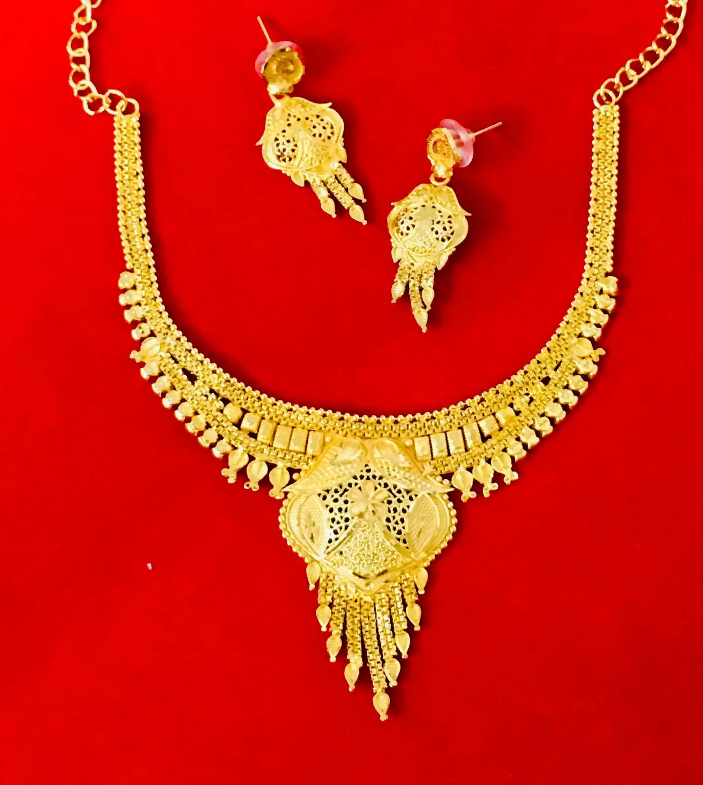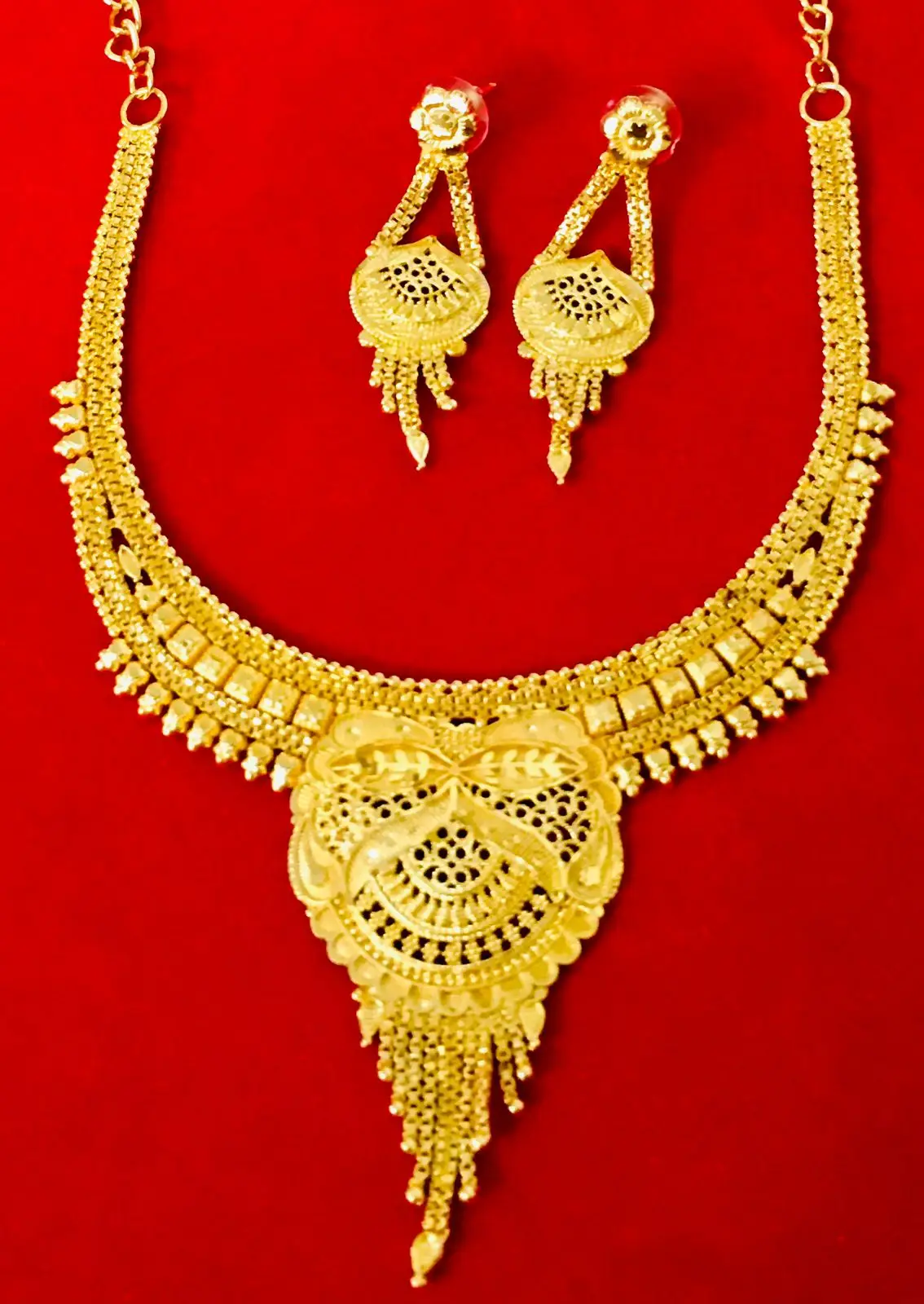 24K Gold Plated Vintage Dubai Fashion Jewelry Set Includes Necklace Earrings Bangles Combs Copper Material Diamond Germany