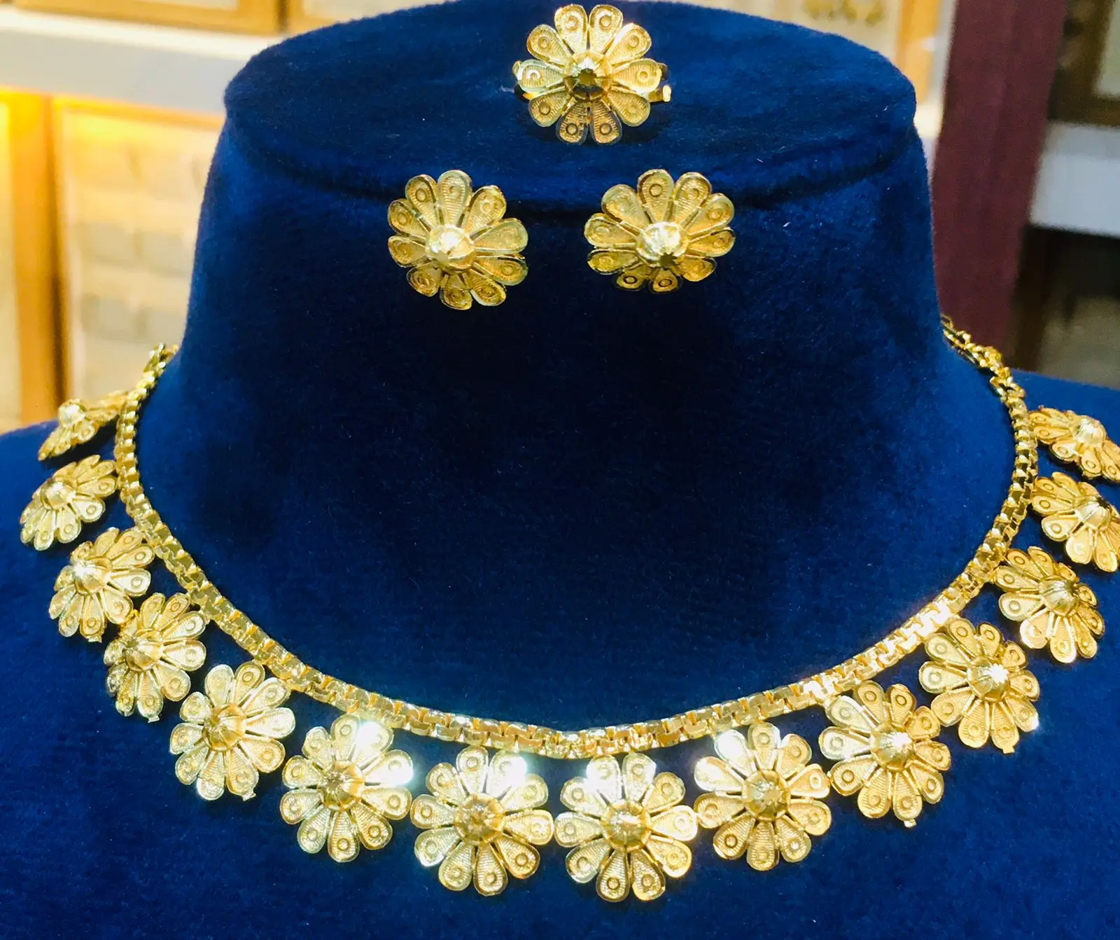 24K Gold Vintage Fashion Set Indian Manufacturer Includes Necklace Combs-for Silver Anniversary Mainly Copper Jewelry Made USA