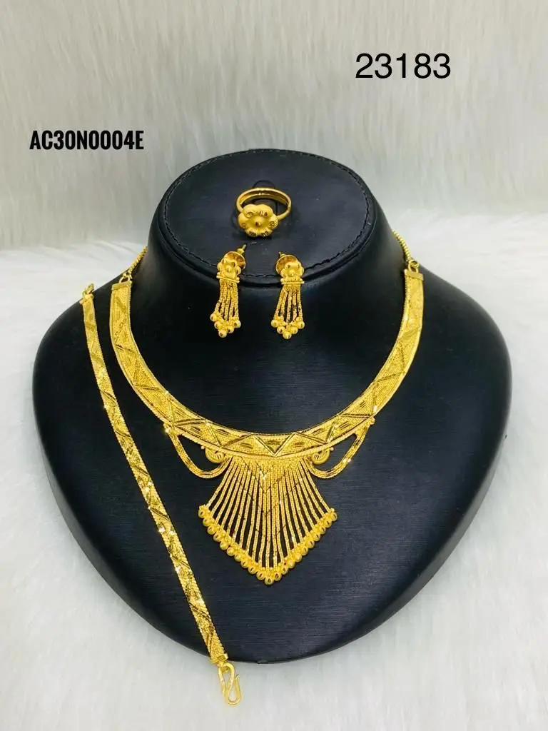 24 Carat Elegant Gold Necklace and Earring Set Vintage Pear Shaped Intricate Design for Wedding and Party Copper Jewelry