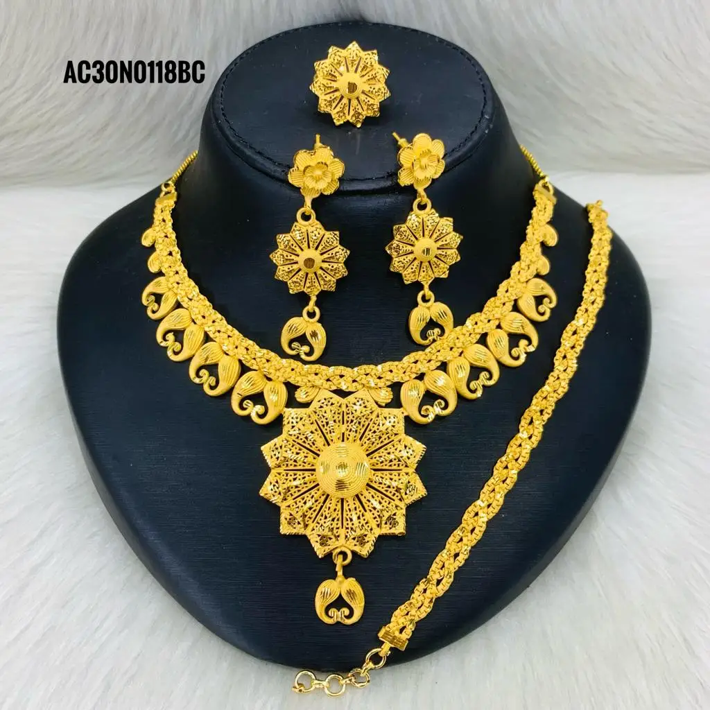 Italian Inspired Vintage Fashion 24K Gold Plated Copper Necklace Earring Set Directly Shipped USA France Spain Turkey Comoros