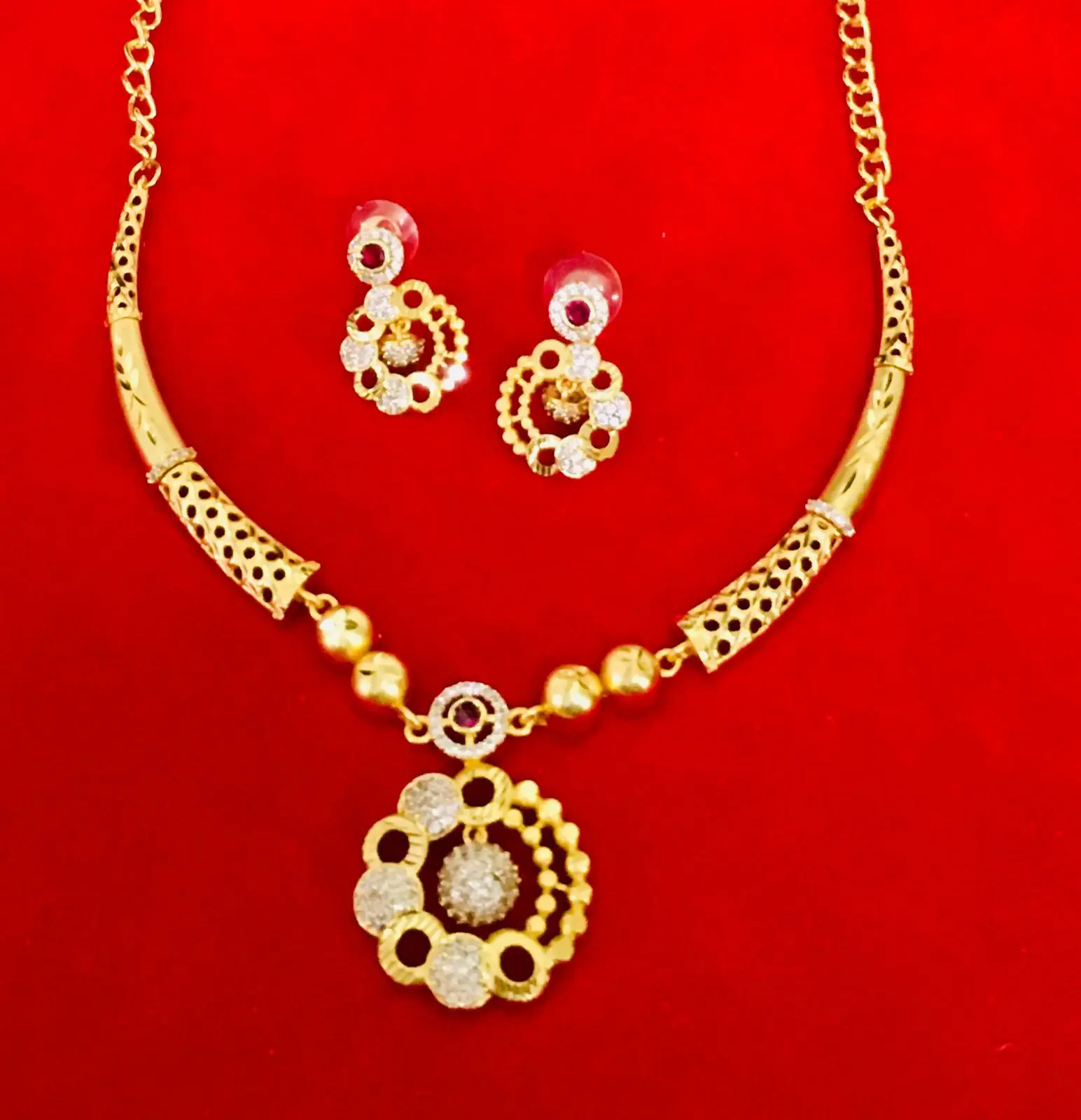 24K Gold Plated Dubai Vintage Fashion Necklace Set Earrings Bangles Combs Brooches Featuring Pearl Crystal Copper Made USA