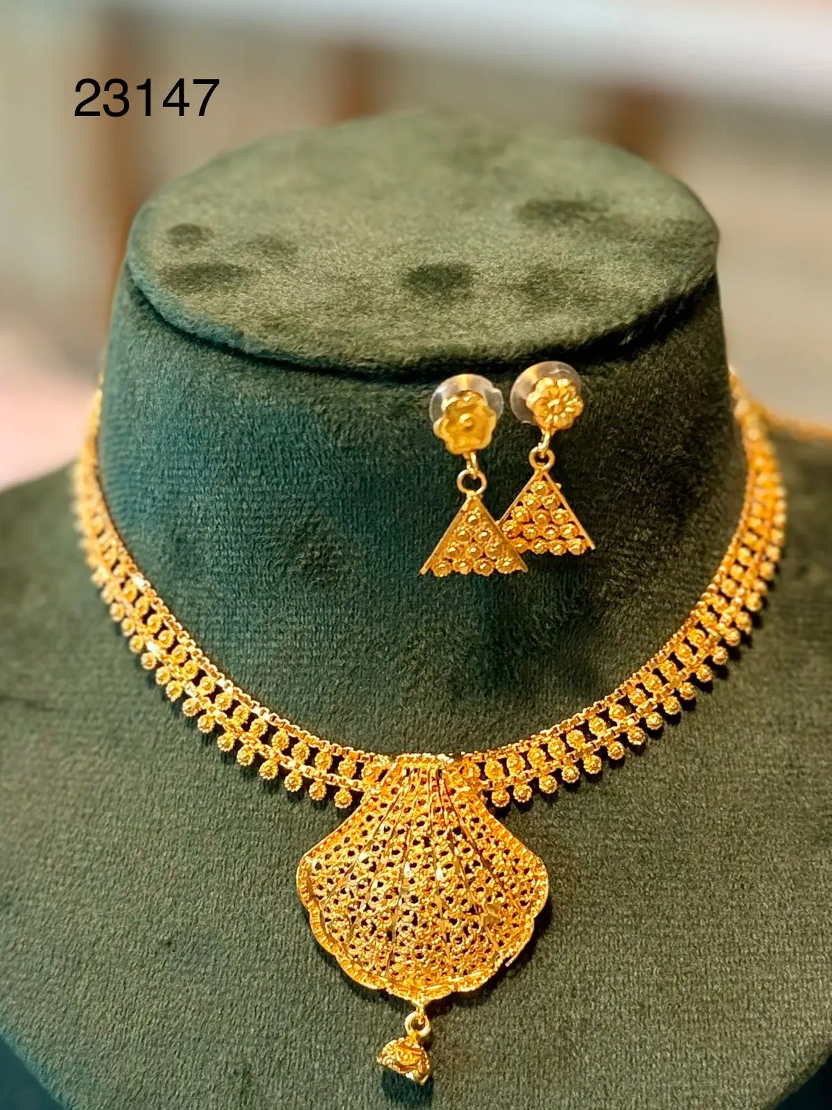 24 Carat Gold Necklace and Earring Set Vintage Style Women's Gift for Weddings Parties Engagements Anniversaries