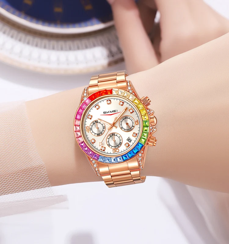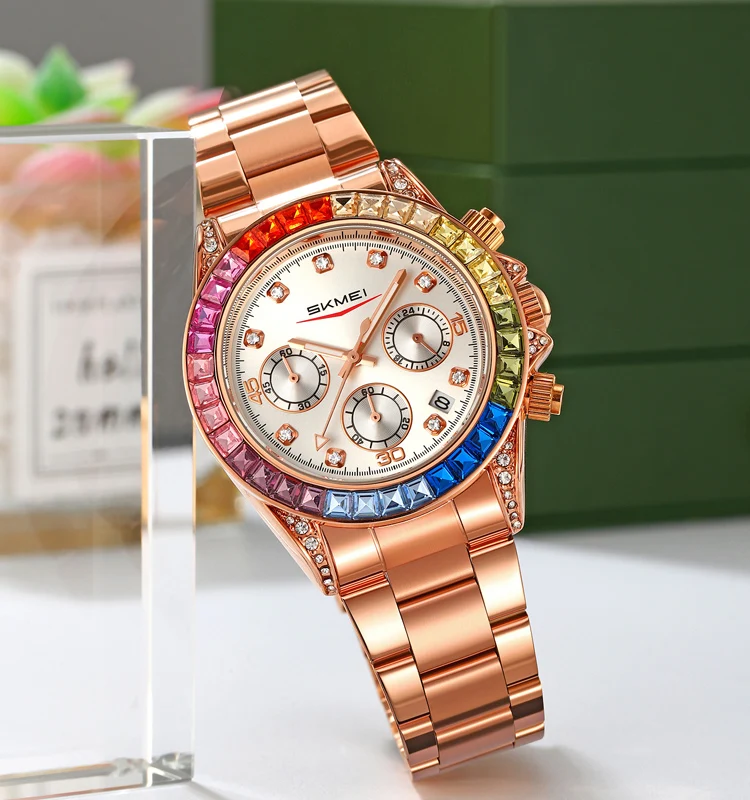 SKMEI 2352 High-end Fashion Business Rhinestone Scales Colorful Vibrant Atmospheric Textured Glass Elegant Exquisite Men's
