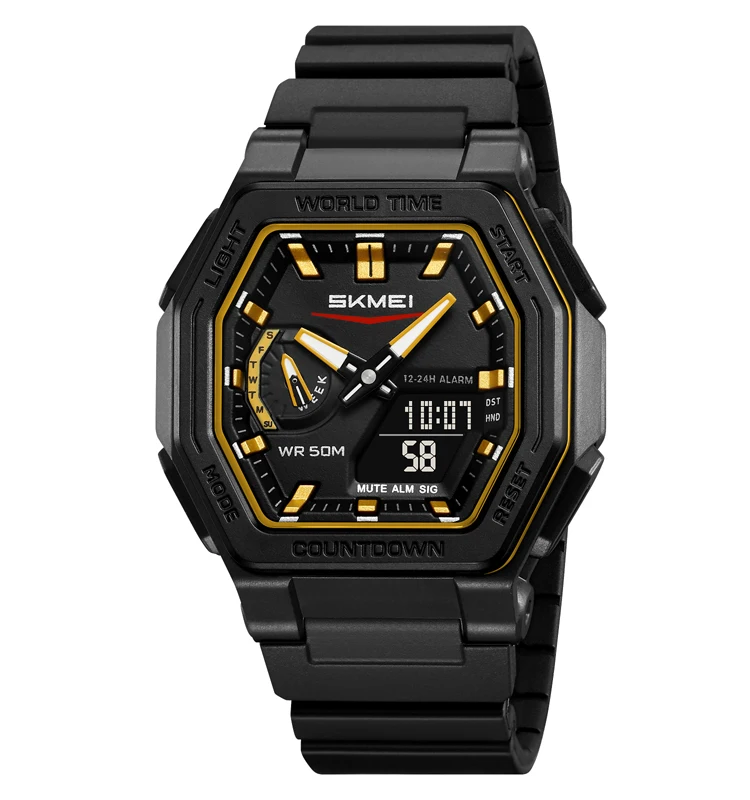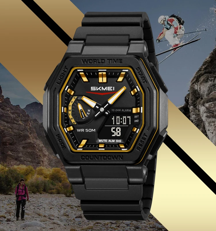 SKMEI 2438 High-end Men's Sport Luxury Classic Digital Watch Stainless Steel Multi-function 50 Bar Water Resistance
