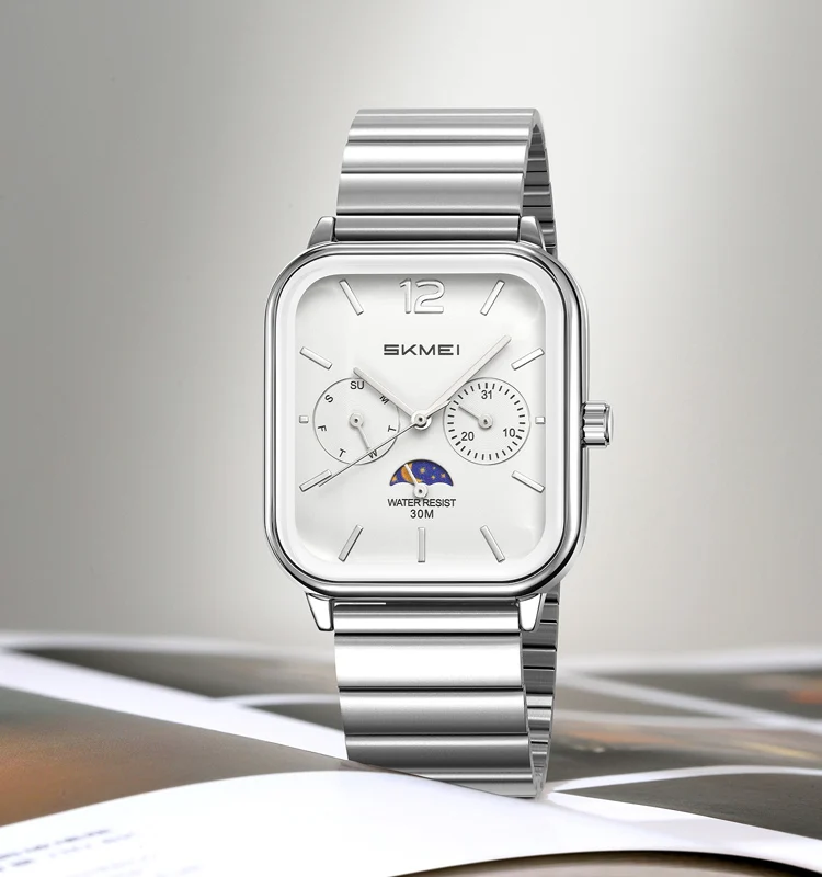 Skmei 9348 Luxury Charm Cartoon Auto Date Luminous Pointer Stainless Steel Strap Water Resistant Business Watch for Men
