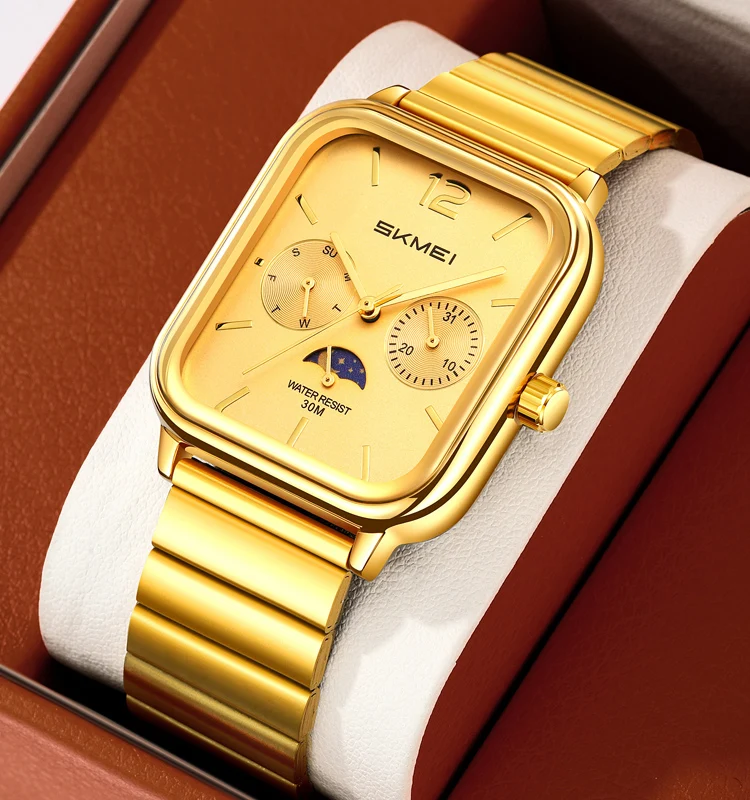 SKMEI 2509 New Arrival Luxury Gold Square 10mm Thickness Case Antique Fashion Glass Dial Men Quartz Watch