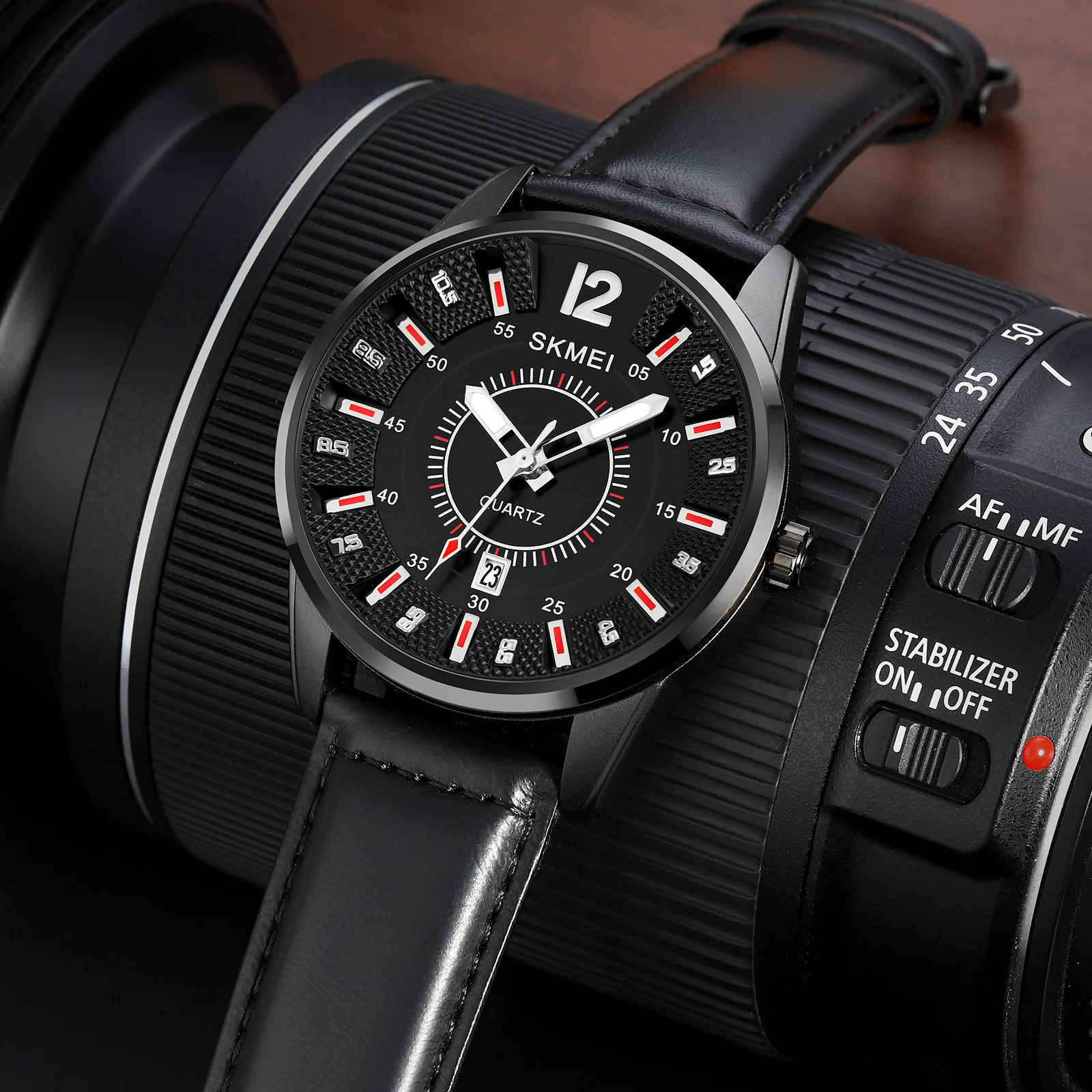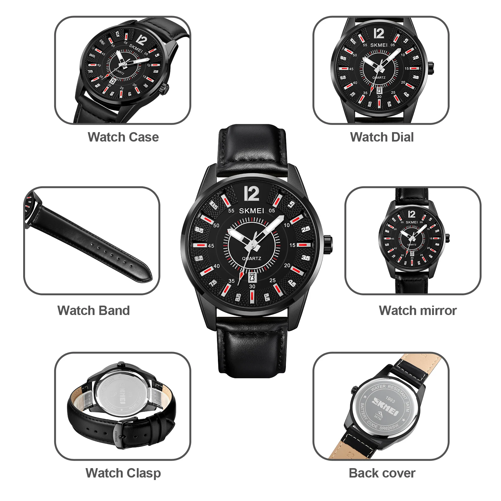 SKMEI 1993 Luxury Business Sport Coin Watch for Men Leather Strap Quartz Movement 22mm Band Glass Dial Water Resistant
