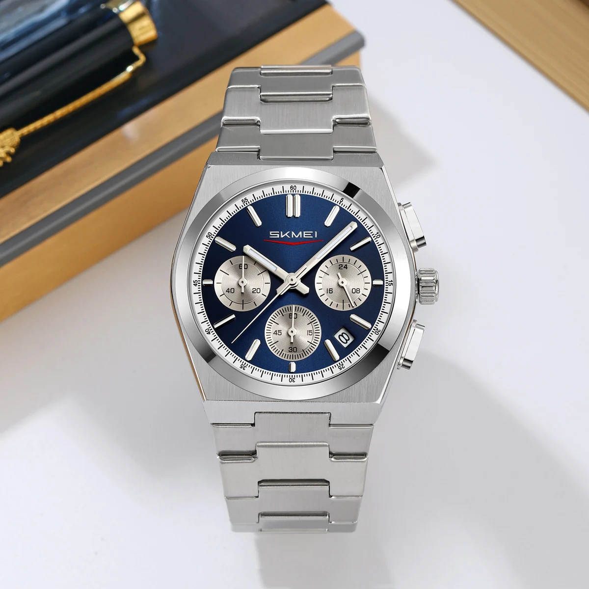 Skmei 9348 Auto Date Luminous Pointer Stainless Steel Strap Business Watch for Men Fashion Waterproof Quartz Antique Retro Sport