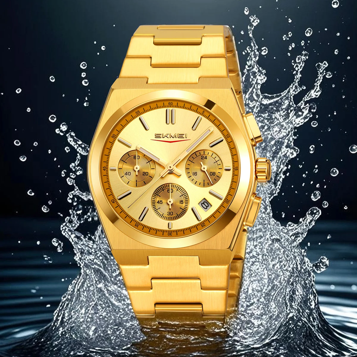 Skmei 9371 Men's Luxury Gold Silver Watch Quartz Movement Alloy Case Stainless Steel Band 3ATM Waterproof Guangzhou Wholesale