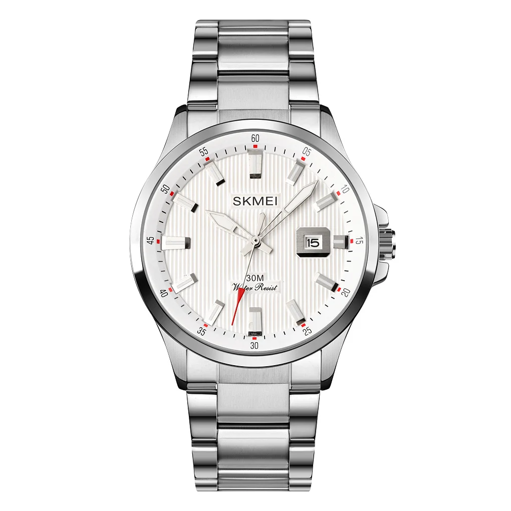 Skmei 9348 Auto Date Luminous Pointer Stainless Steel Strap Business Watch for Men Fashion Waterproof Quartz Antique Retro Sport