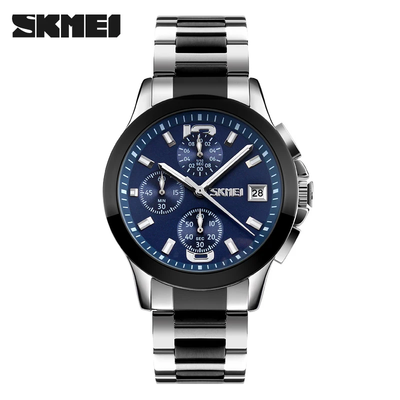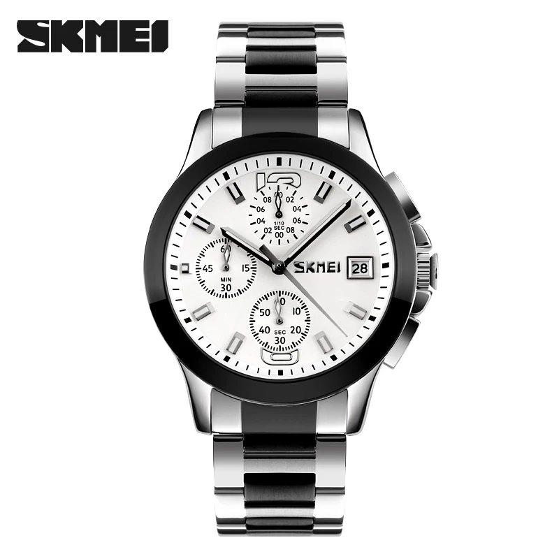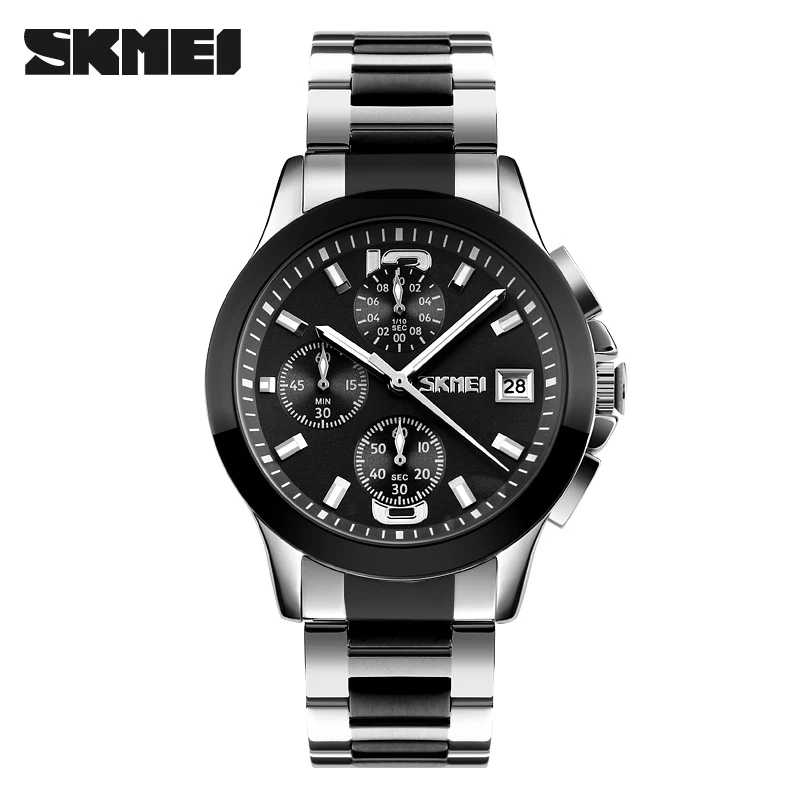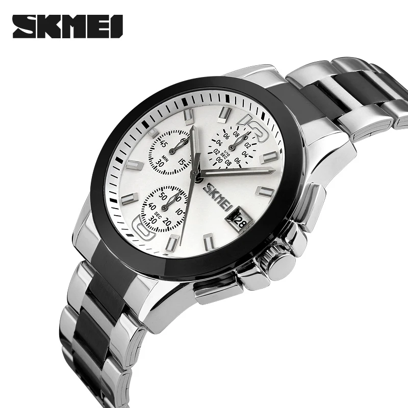 Skmei 9348 Luxury Charm Cartoon Auto Date Luminous Pointer Stainless Steel Strap Water Resistant Business Watch for Men