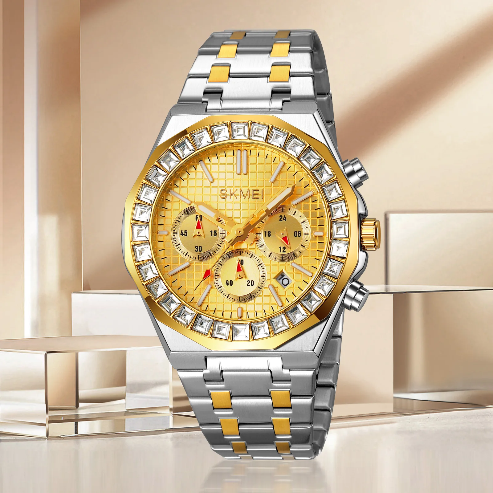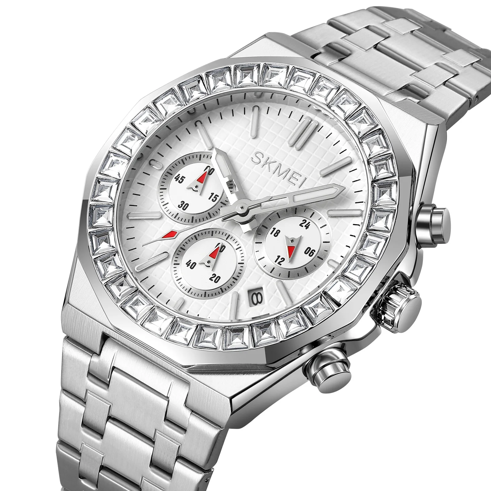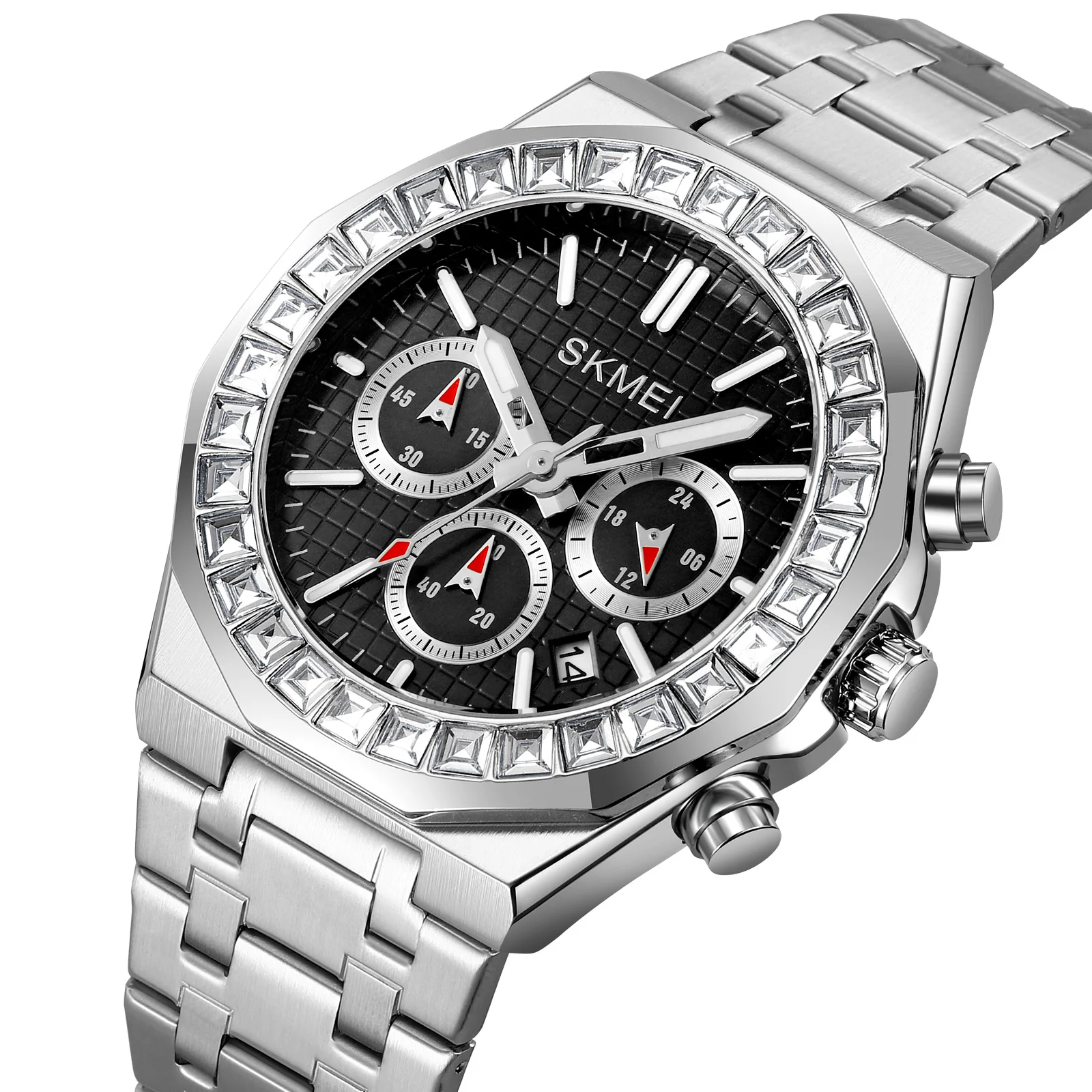 Skmei 9348 Luxury Charm Cartoon Auto Date Luminous Pointer Stainless Steel Strap Water Resistant Business Watch for Men