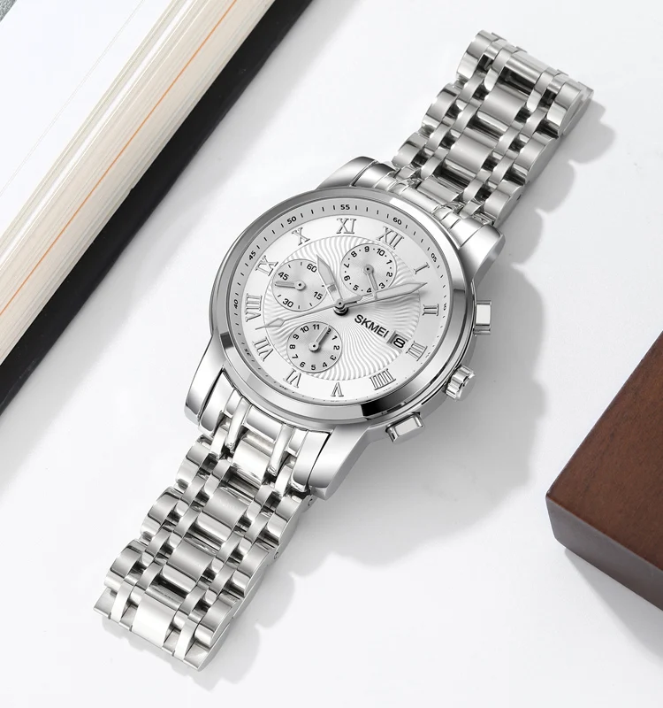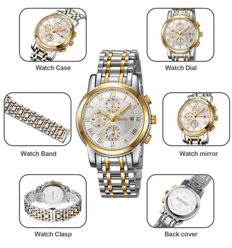 SKMEI 2306 Men's Luxury Fashion Sport Watch 3BAR Water Resistant Quartz Movement Stainless Steel Band Pointer Business New