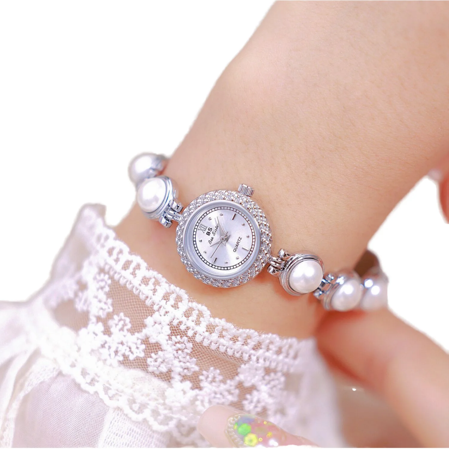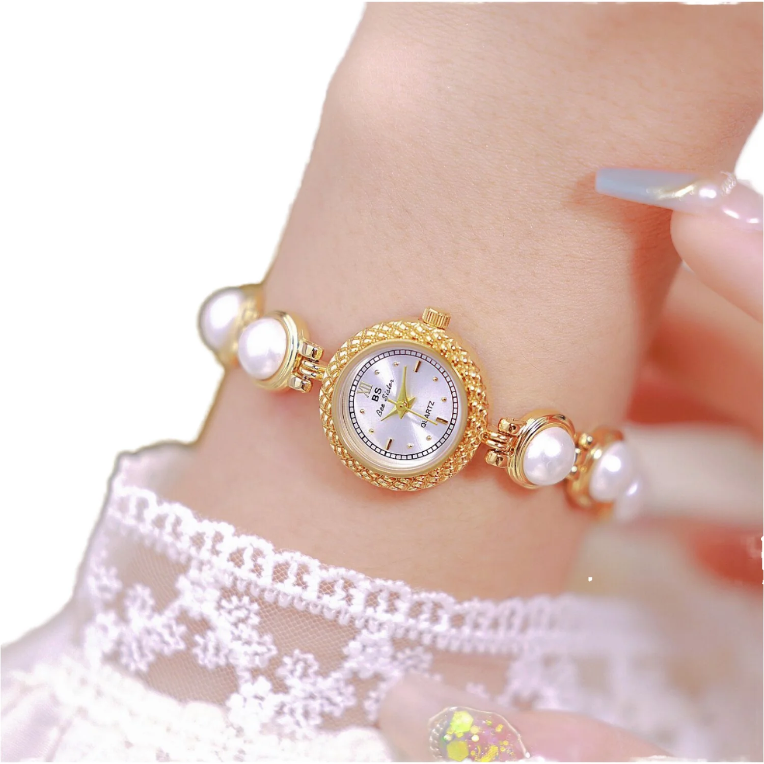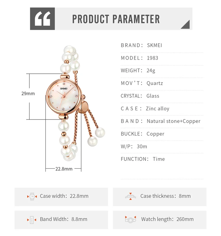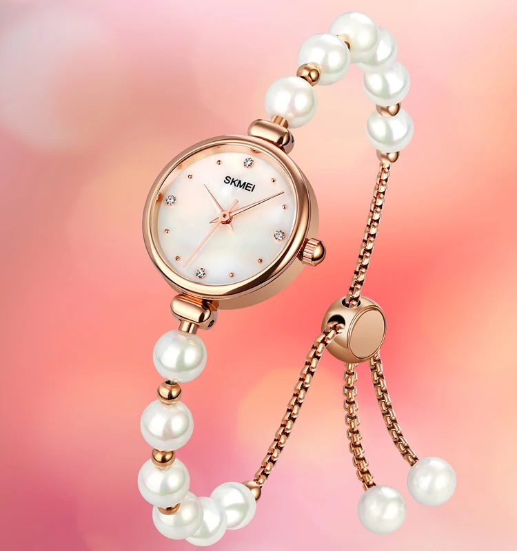 SKMEI 1983 Ladies Vintage Fashion Business Charm Quartz Wristwatch Luxury Pearl Bracelet Band Glass Pointer Stainless Steel