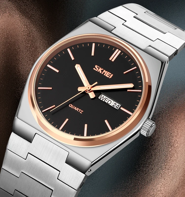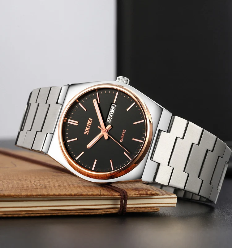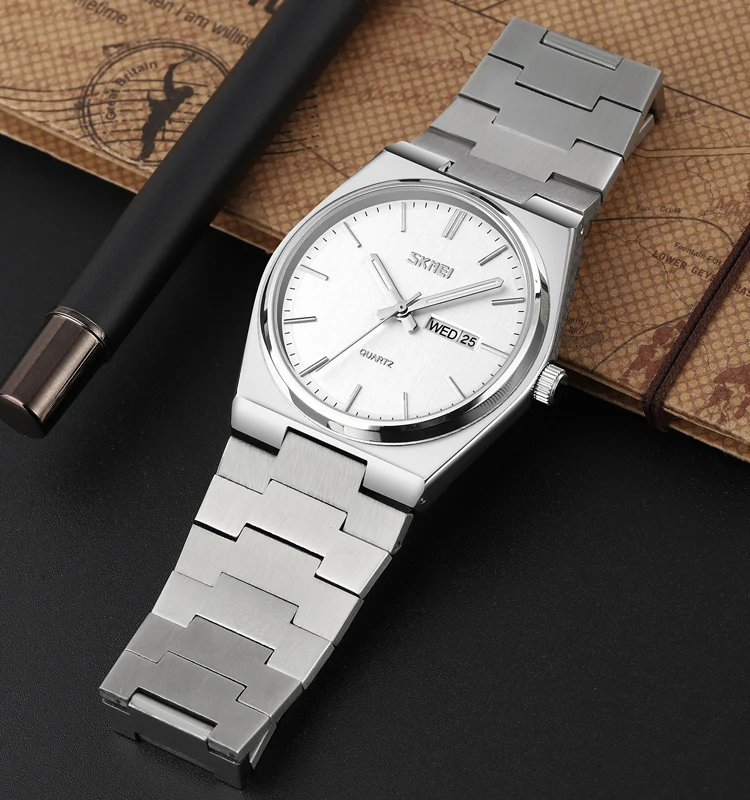 SKMEI 9288 Business Classic Quartz Watch with Glass Dial Waterproof Stainless Steel Band for Men