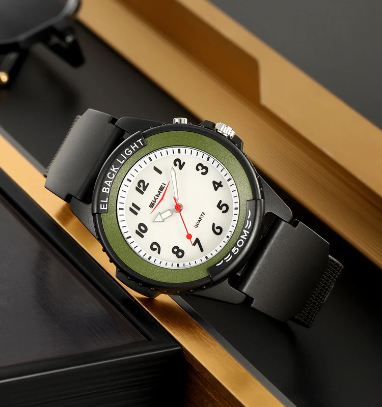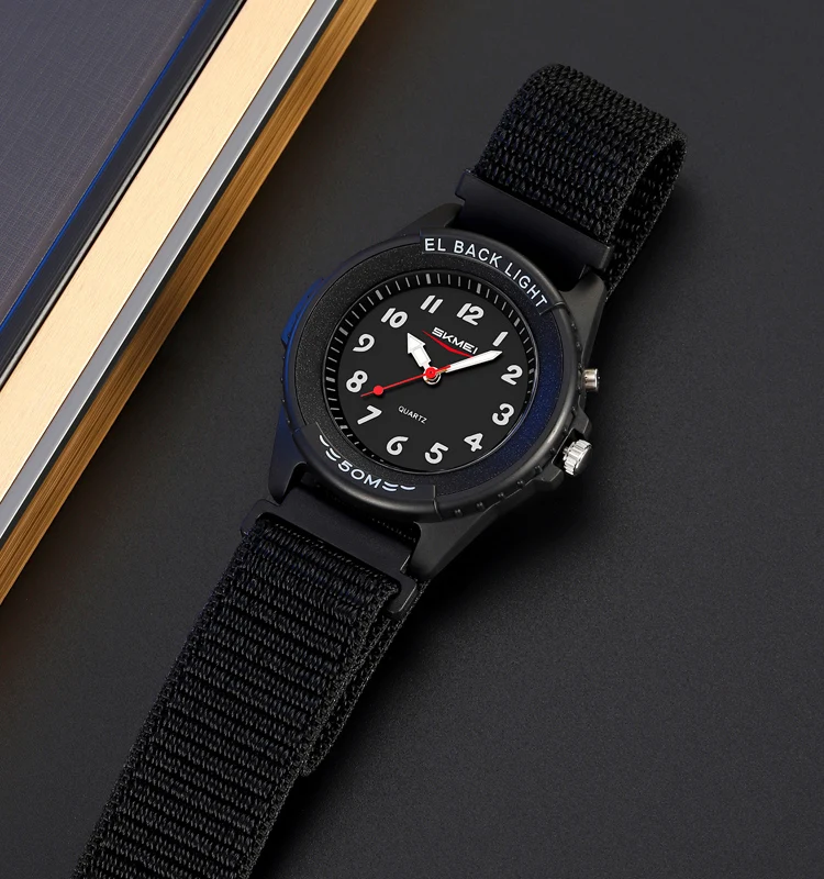 SKMEI 2433 News Wholesale Price Fashion Quartz Watch LED Light Men Teenagers Silicone or Nylon 50m Water Resistant Watches