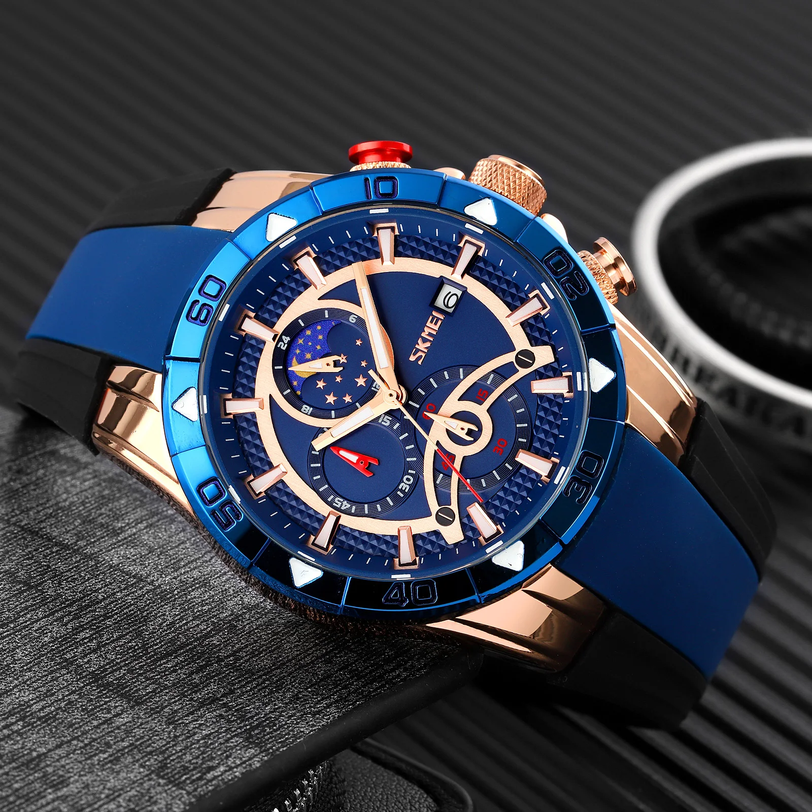 Skmei Luxury Quartz Watch for Man Stopwatch Moon Phase Function Men Wristwatch Silicone Strap Sport Styles