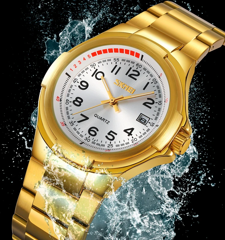 SKMEI 9320 Stainless Steel Business Luxury Fashion Quartz Watch with Glass Dial Water Resistant Men's Simple Design Date Display