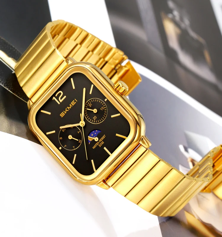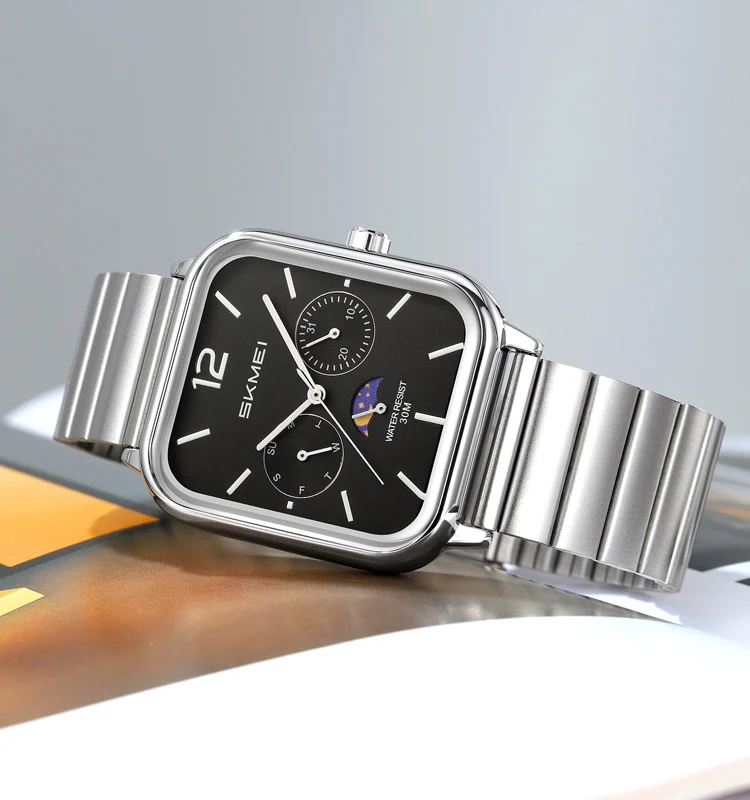 SKMEI 2509 Quartz Watch Luxury Business/Fashion Design Zinc Alloy Case Square Dial Stainless Steel 10mm Glass Pointer 3BAR Water