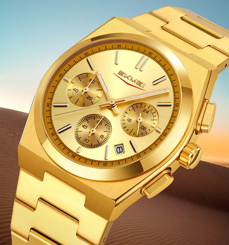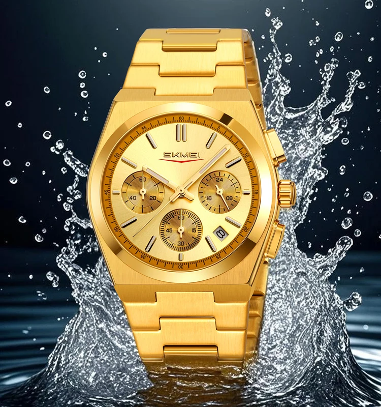 SKMEI 9371 New Business Fashion Watch Quartz Movement 3BAR Water-Resistant Stainless Steel Band 40mm Glass Custom Logo Pointer