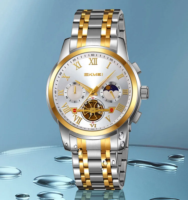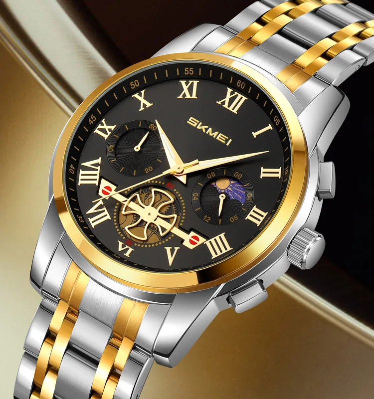 SKMEI 9394 Luxury Men's Watch Quartz Movement 3BAR Water Resistant Zinc Alloy Case Stainless Steel Band Stop Watch Simple