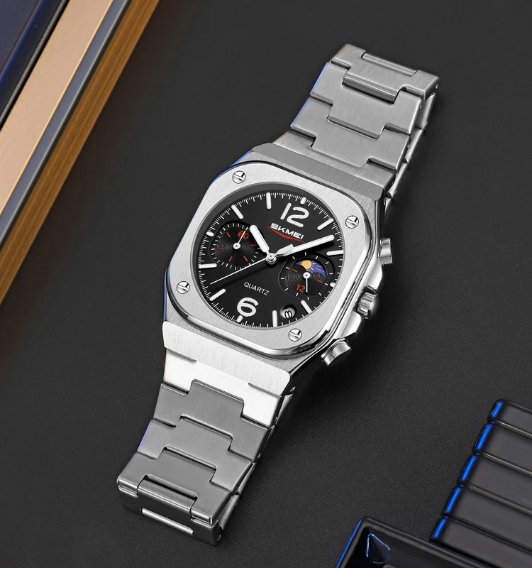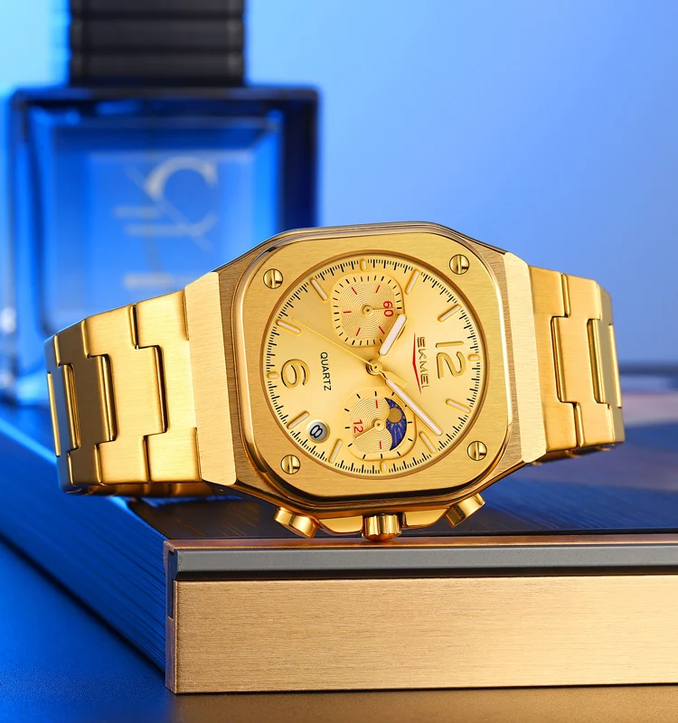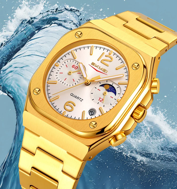 SKMEI 9368 Square Stainless Steel Quartz Movement Water Resistant Analog Pointer Dial Fashion Business Luxury Watch