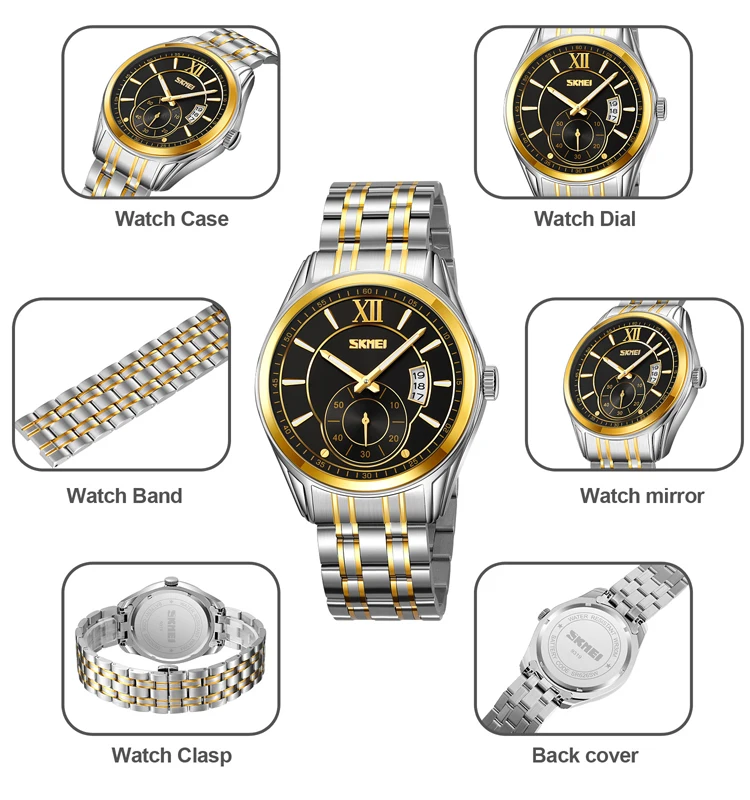 SKMEI 9319 Luxurious Multifunctional Three-eye Six-hand Business Sports Quartz Watch with Running Seconds Function