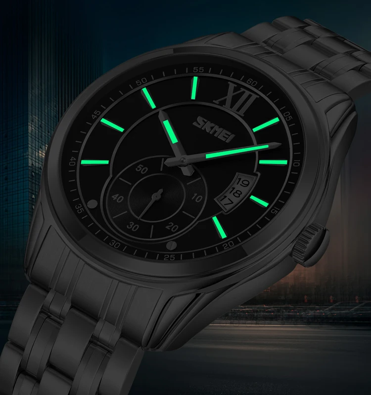 Skmei 9348 Luxury Charm Cartoon Auto Date Luminous Pointer Stainless Steel Strap Water Resistant Business Watch for Men