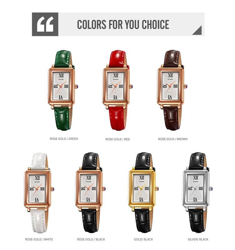 Skmei 2171 Customized logo Luxury Genuine Leather Lady's Rectangle Watches Simple Fashion Valentine Quartz Watch for Women