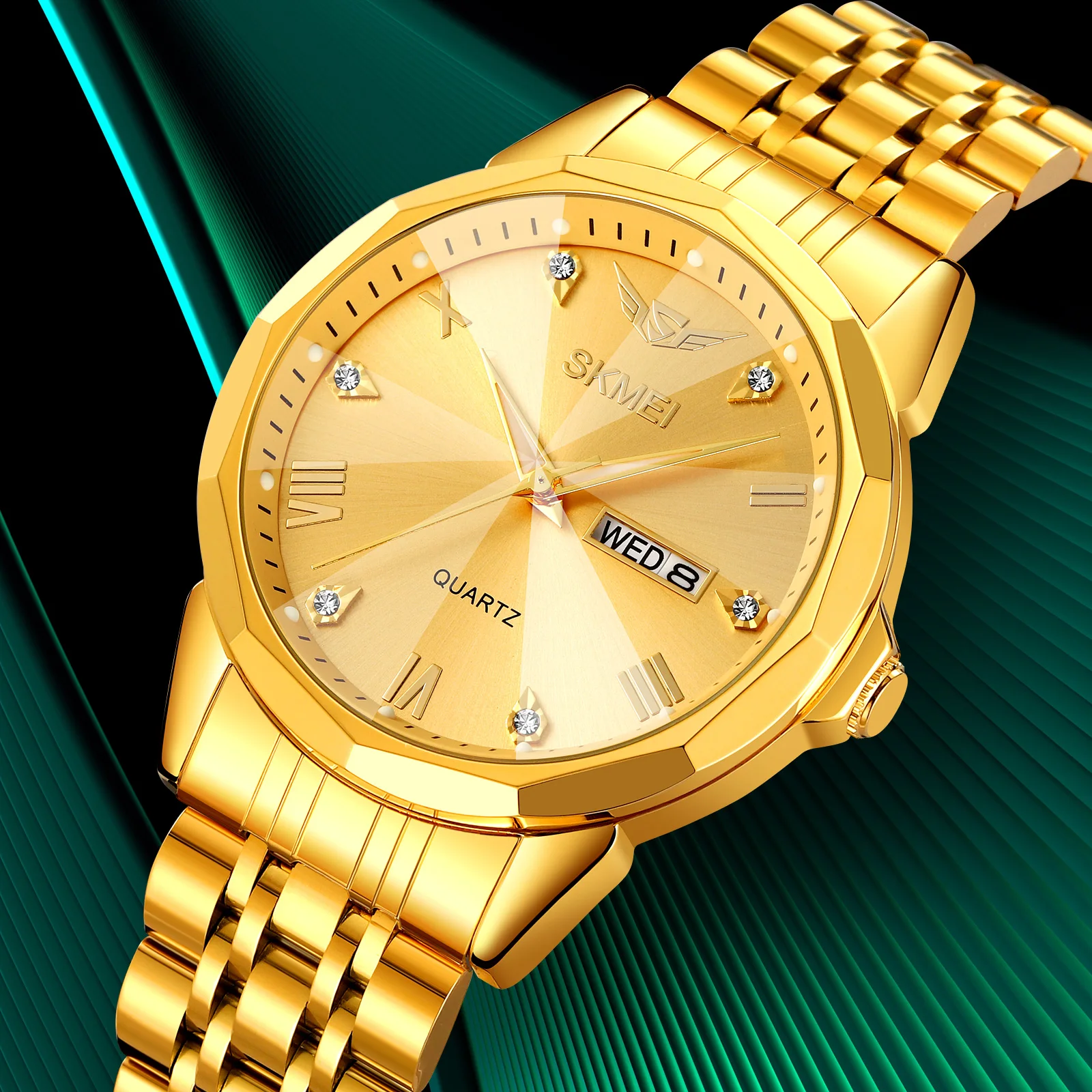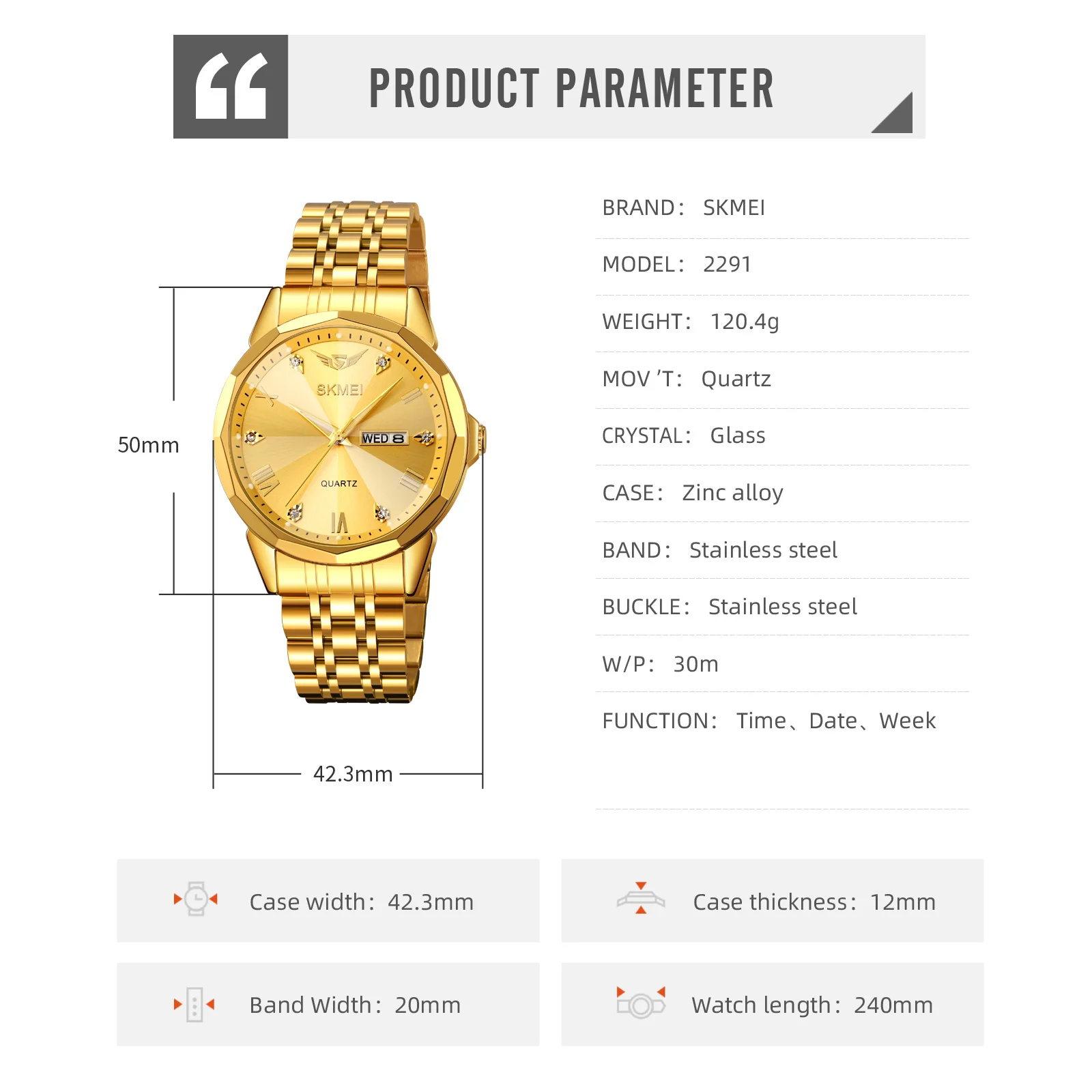 Luxury Square Case Stainless Steel Strap Quartz Watch SKMEI 2291 Coin Design Chronograph Day/Date Display Waterproof 3ATM