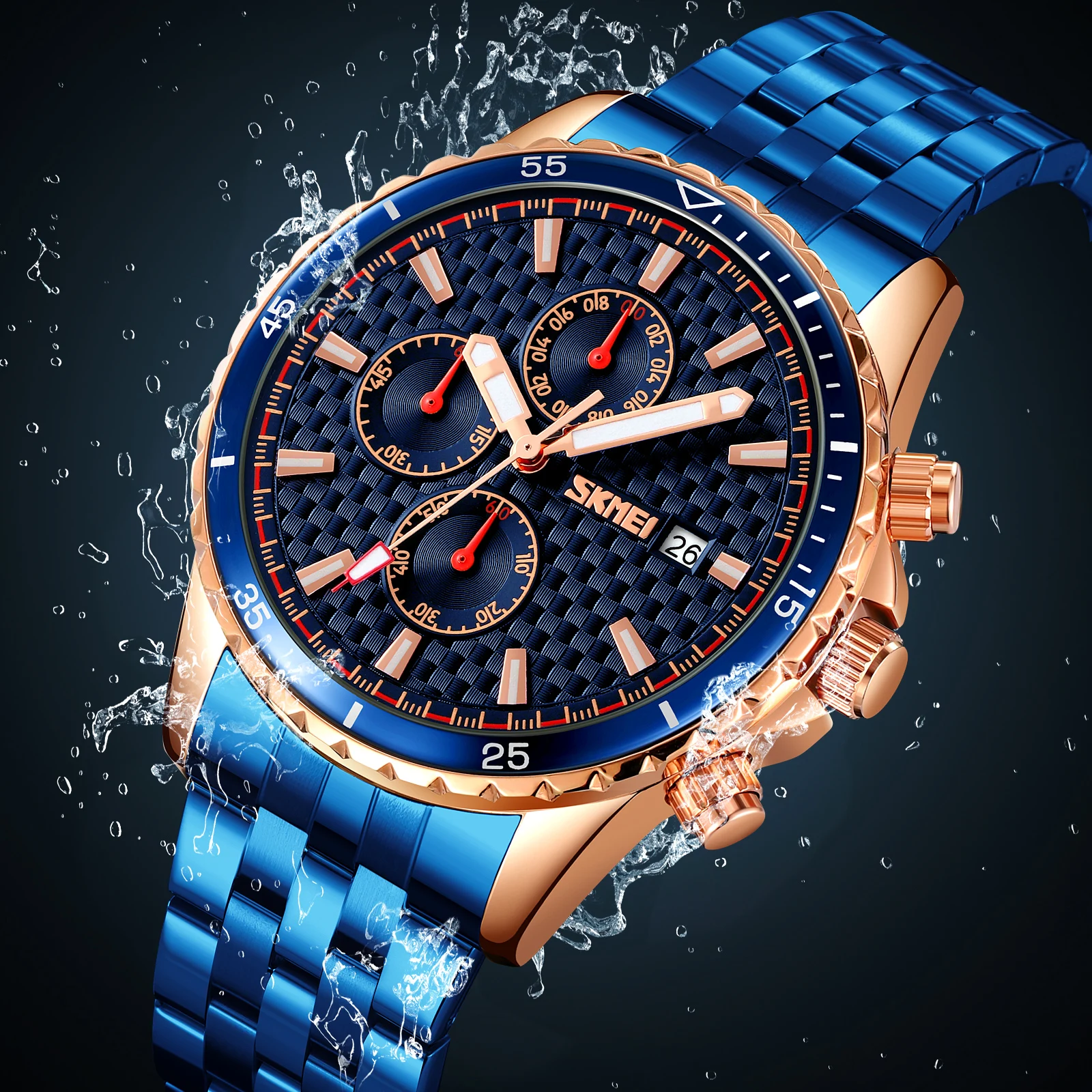 Skmei 9334 Business Charm Gold Date Chronograph Custom Logo Luxury 3BAR Waterproof Quartz Watch Men Stainless Steel Sport Watch