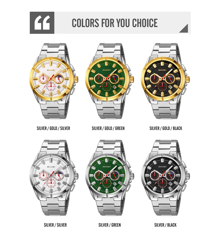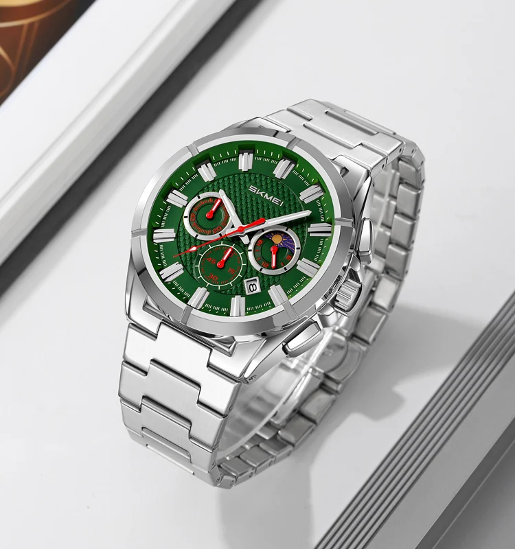 SKMEI 9355 Original Factory Phase of the Moon Function Men Quartz Watch 3ATM Water Resistant Customized Gift Watches