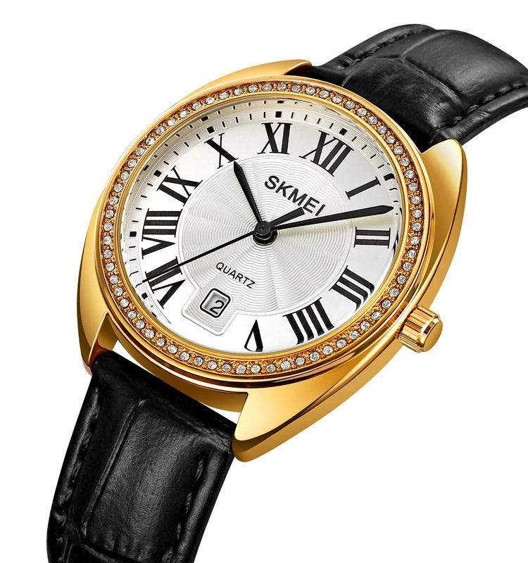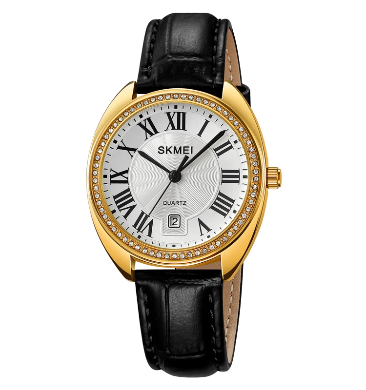 SKMEI 2183 Women's Business Luxury Genuine Leather Strap Quartz Watch with Date Display 16mm Band Waterproof Gift Box