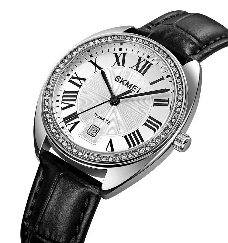 SKMEI 2183 Luxury Leather Strap Women's Quartz Watch Sport Fashion Charm Glass Dial Waterproof Wrist Watch Set with Gift Box